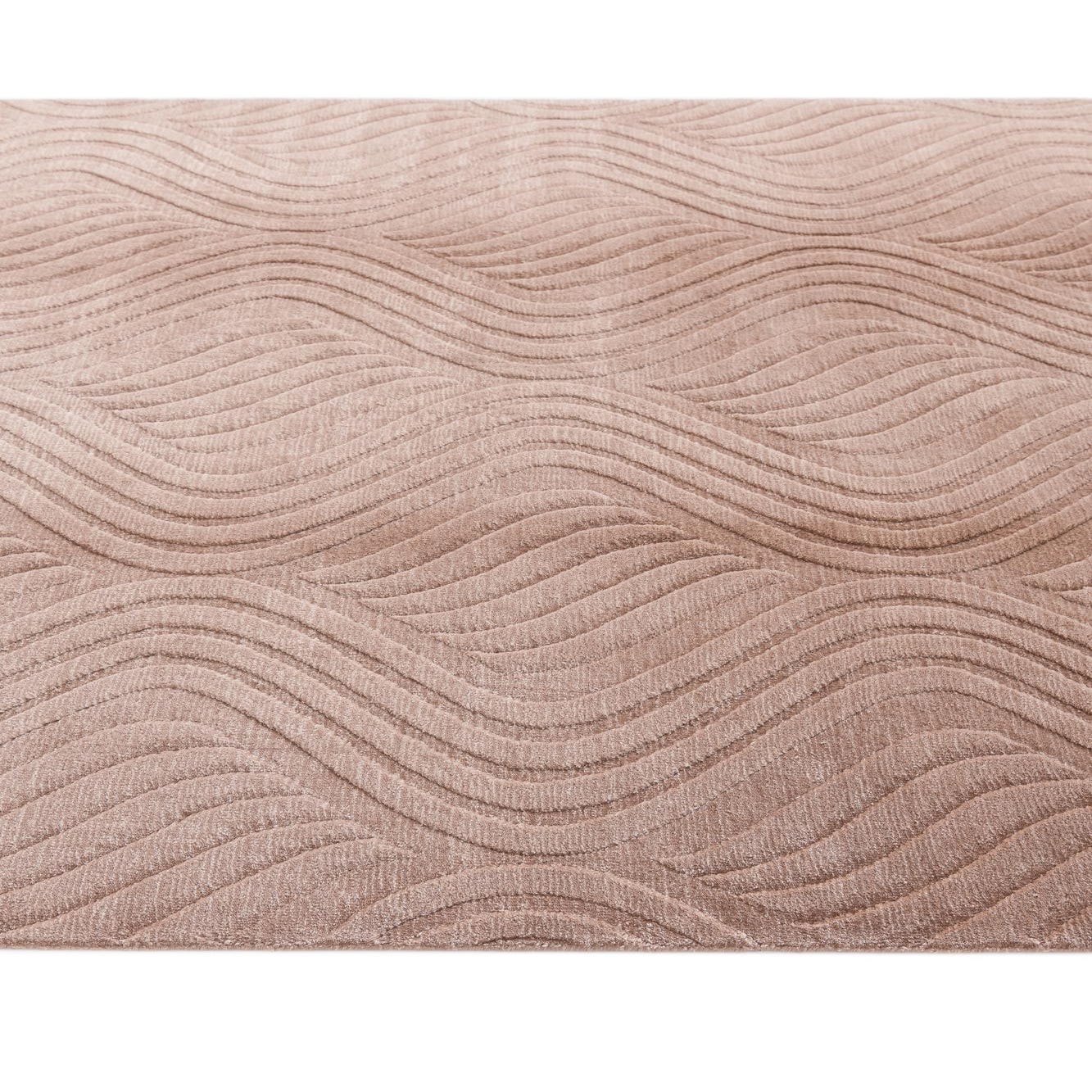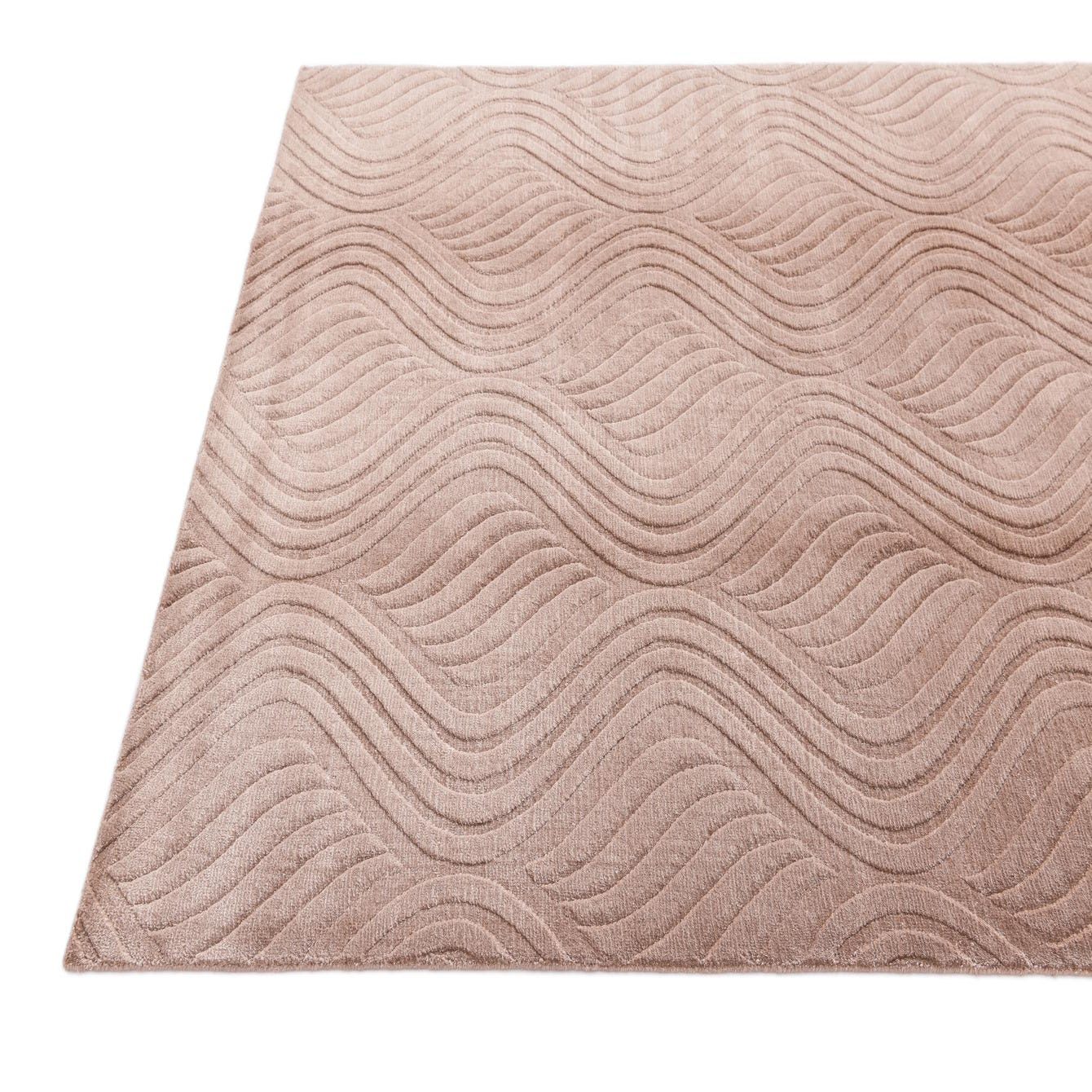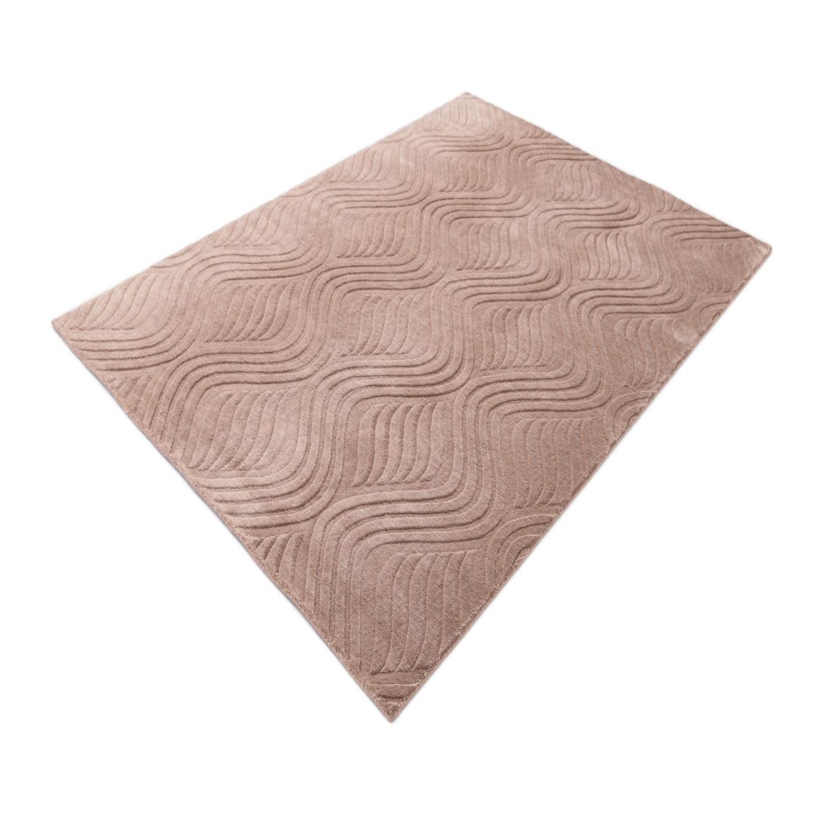 A 5x8 rectangular Darya Collection rug in warm brown with a modern wavy pattern, handmade from wool.
