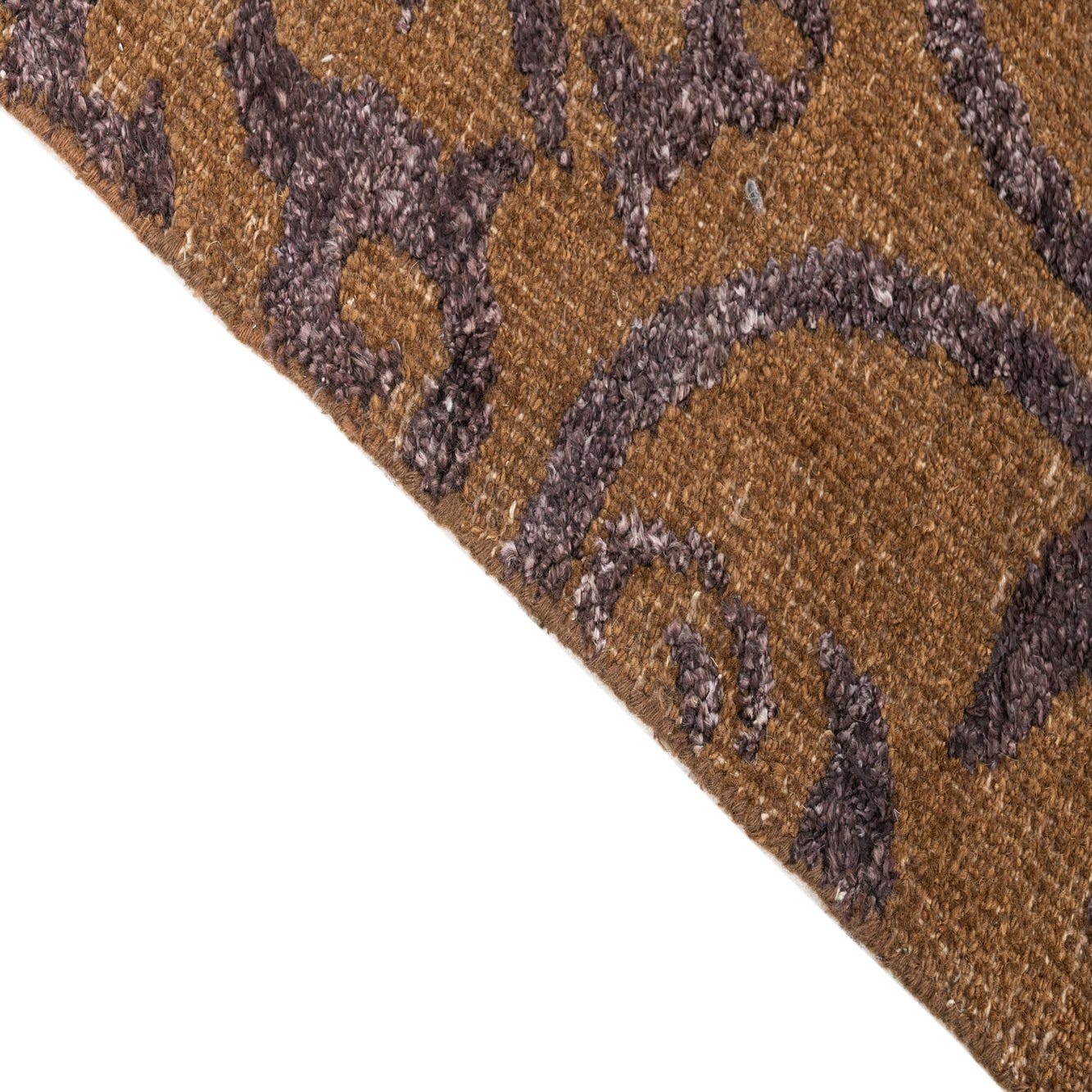 Primary color is Brown. Colors in this rug include: Brown, Purple.