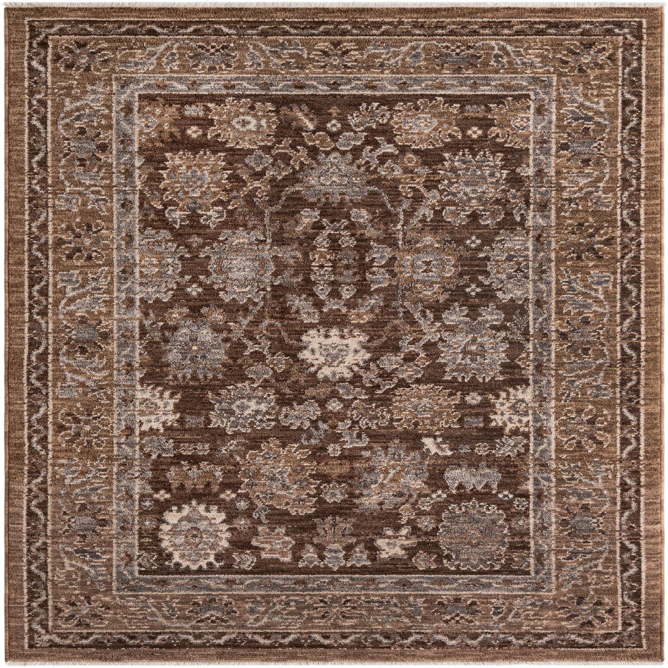 Primary color is Brown. Colors in this rug include: Brown, Ivory, Gray.