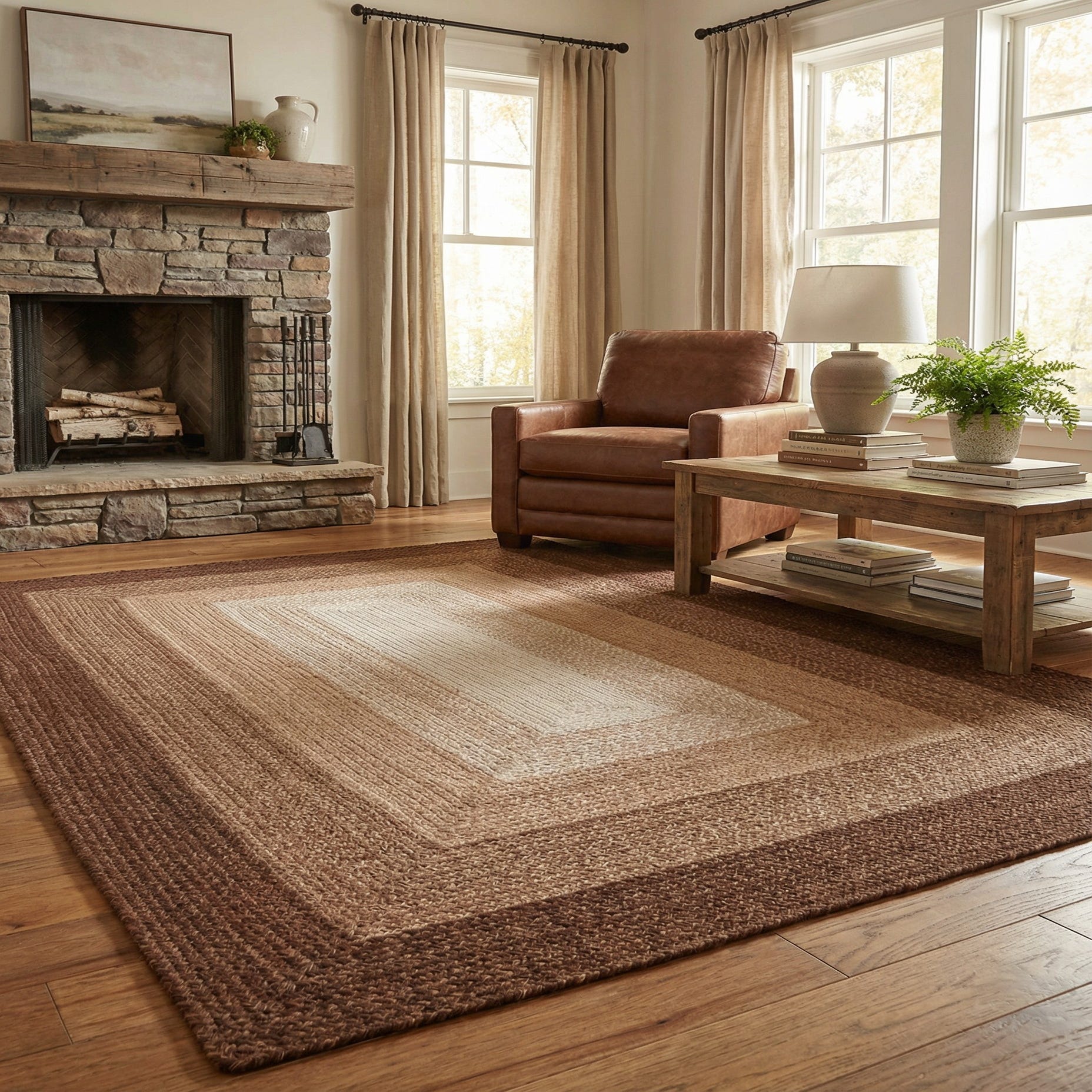 Primary color is Brown. Colors in this rug include: Brown, Light Brown.
