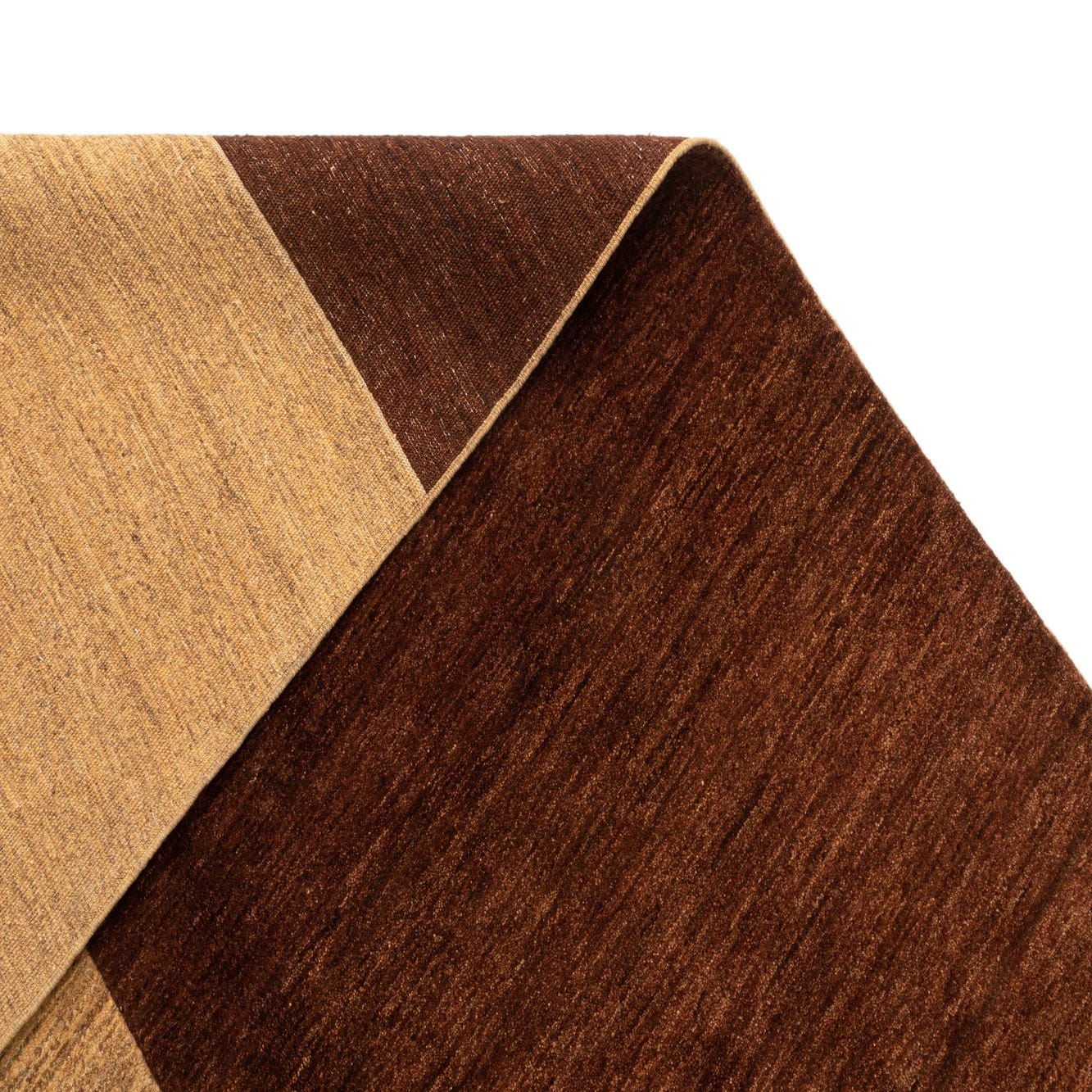Due to the wool construction, the texture of this rug is rich and pleasant to touch, enhancing the cozy feeling in any space. The earth-toned color scheme combined with the striking design makes it well-suited for modern and minimalist interiors, or as a sophisticated complement to more traditional decor where its understated elegance can add depth and interest without overwhelming the setting. The Juma rug is an appealing choice for living rooms, home offices, or dining areas where its durable nature and pleasing aesthetics can be appreciated daily.