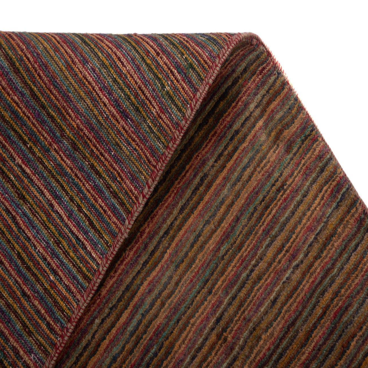 A rectangular 5x8 Juma Persian rug featuring horizontal stripes in various shades of brown and tan.