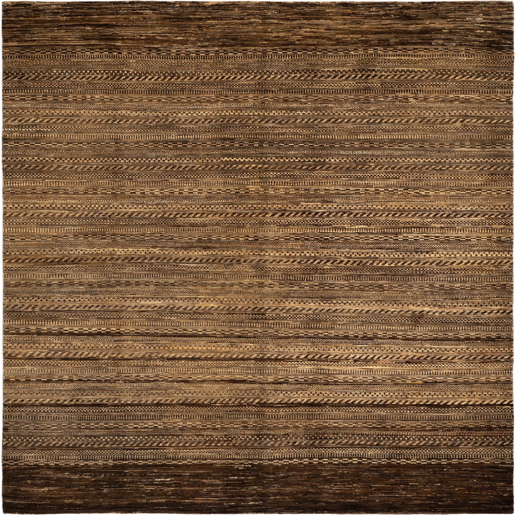 A 5x8 rectangular Juma Persian rug featuring horizontal stripes in varying shades of brown and tan.