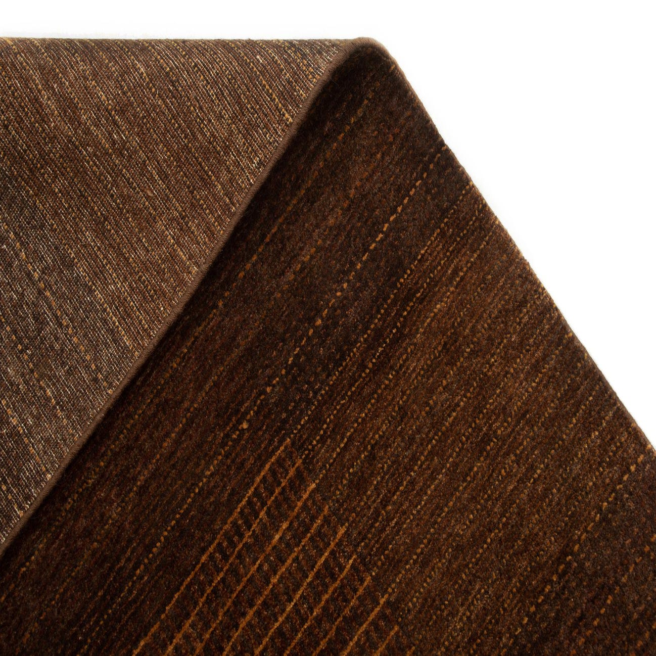 The texture of the rug is indicative of its woolen craftsmanship, promising a natural feel that is pleasing underfoot. The interplay of the various brown shades within the design grants a versatile aesthetic that can harmonize with a wide range of interior styles.