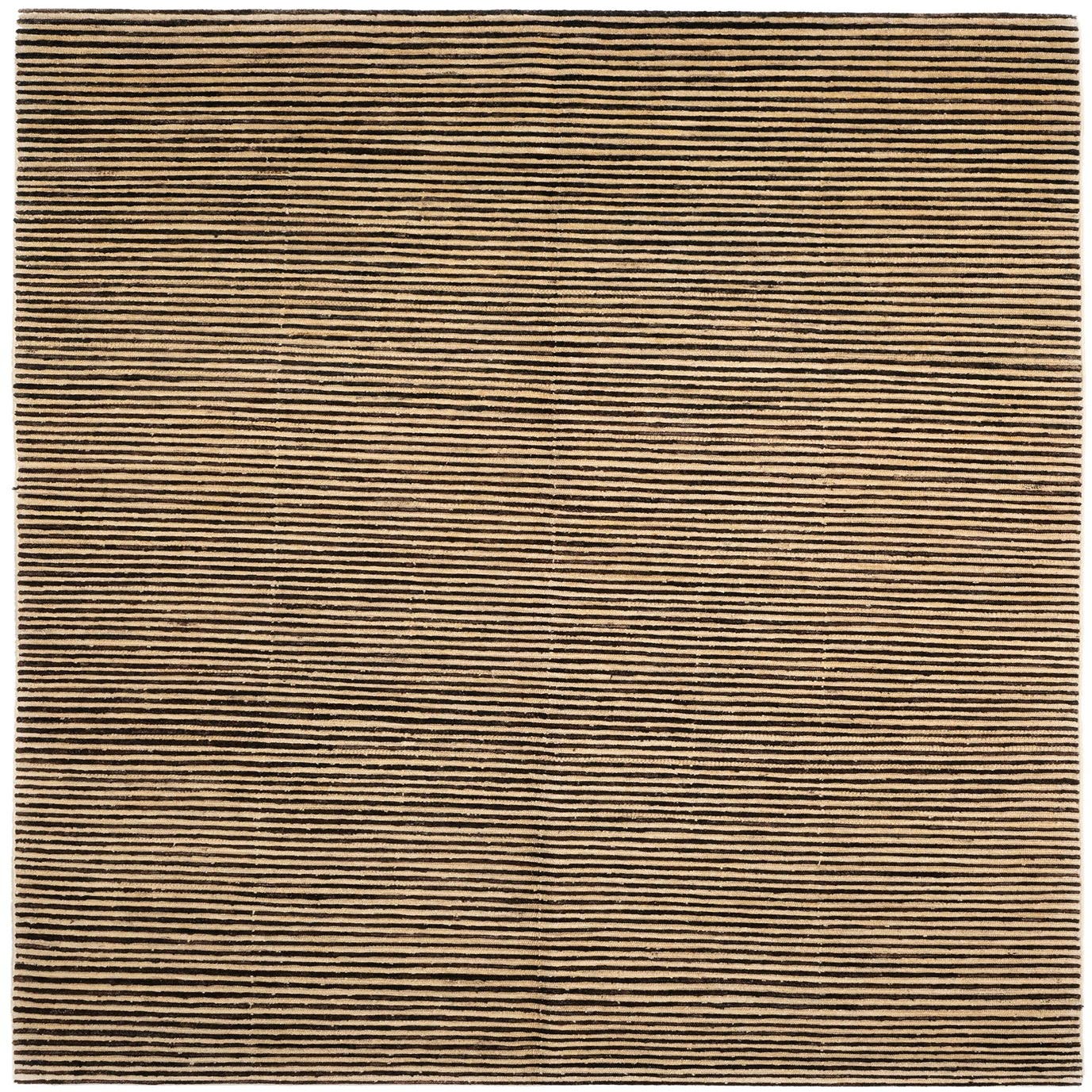 A rectangular 5x8 Juma Persian rug from Rugs.com, featuring horizontal stripes of dark brown and natural tan wool.