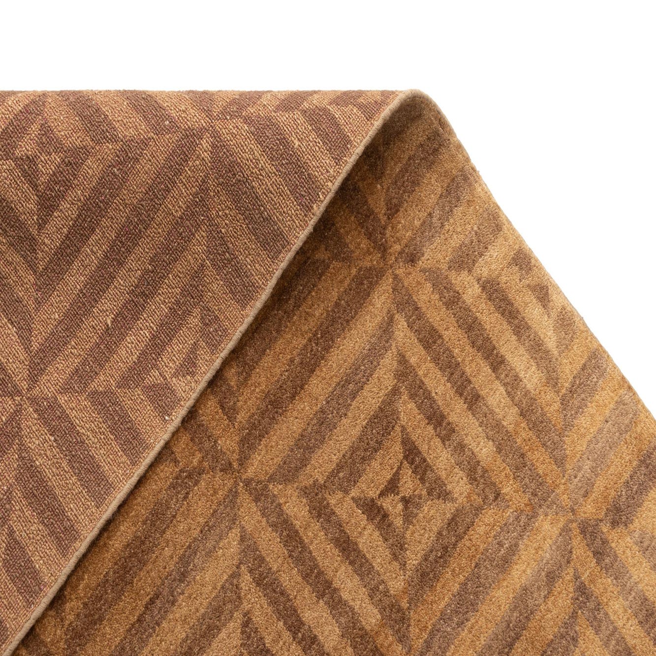 Primary color is Brown. Colors in this rug include: Brown, Brown, Beige.
