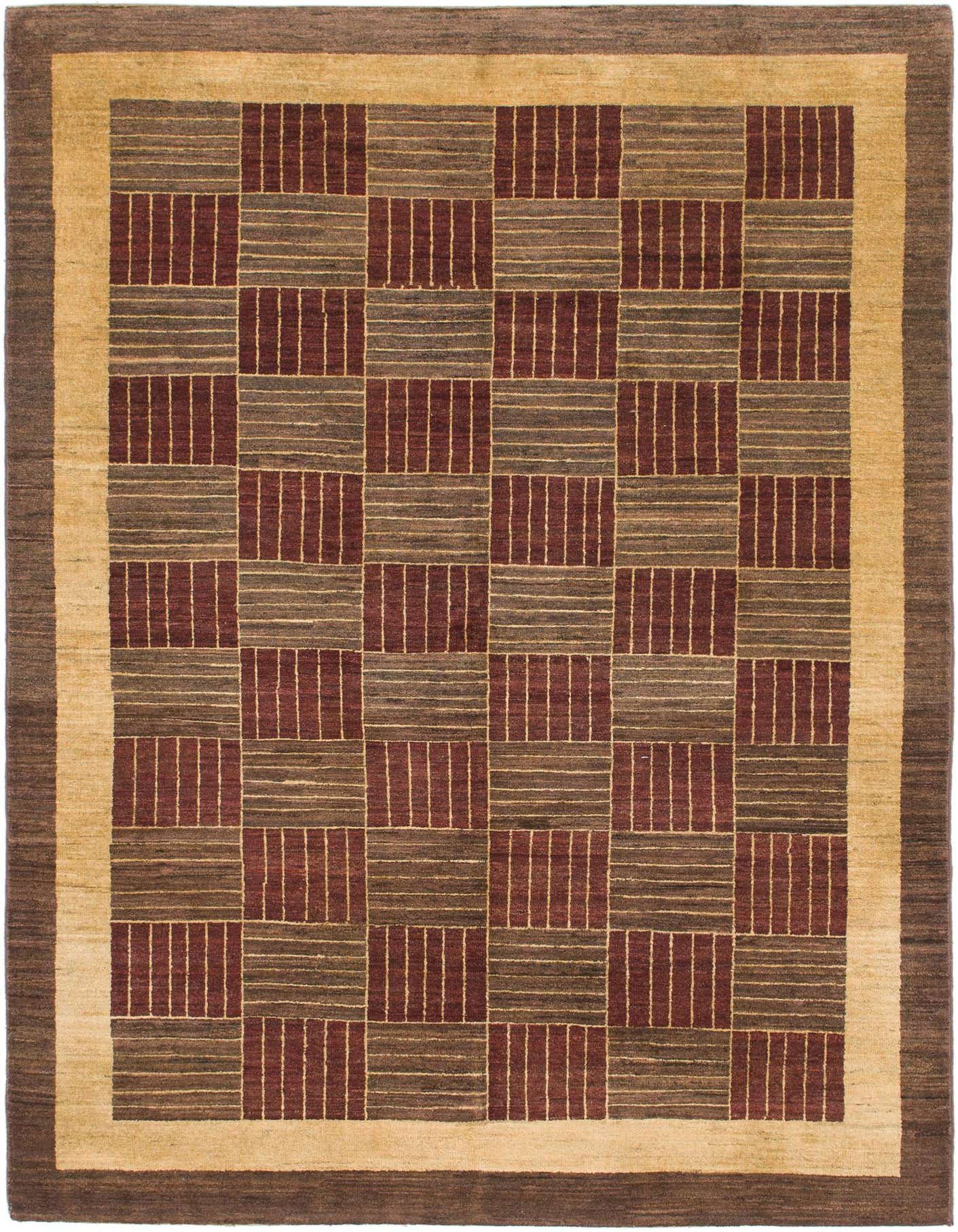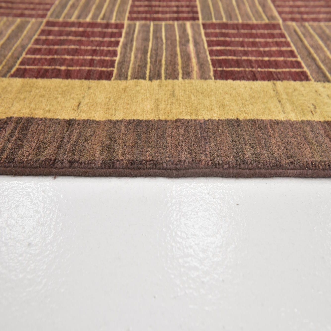Primary color is Brown. Colors in this rug include: Brown, Burgundy, Gold.