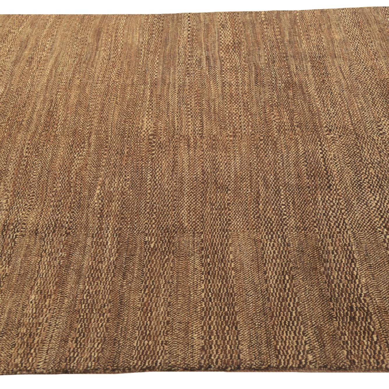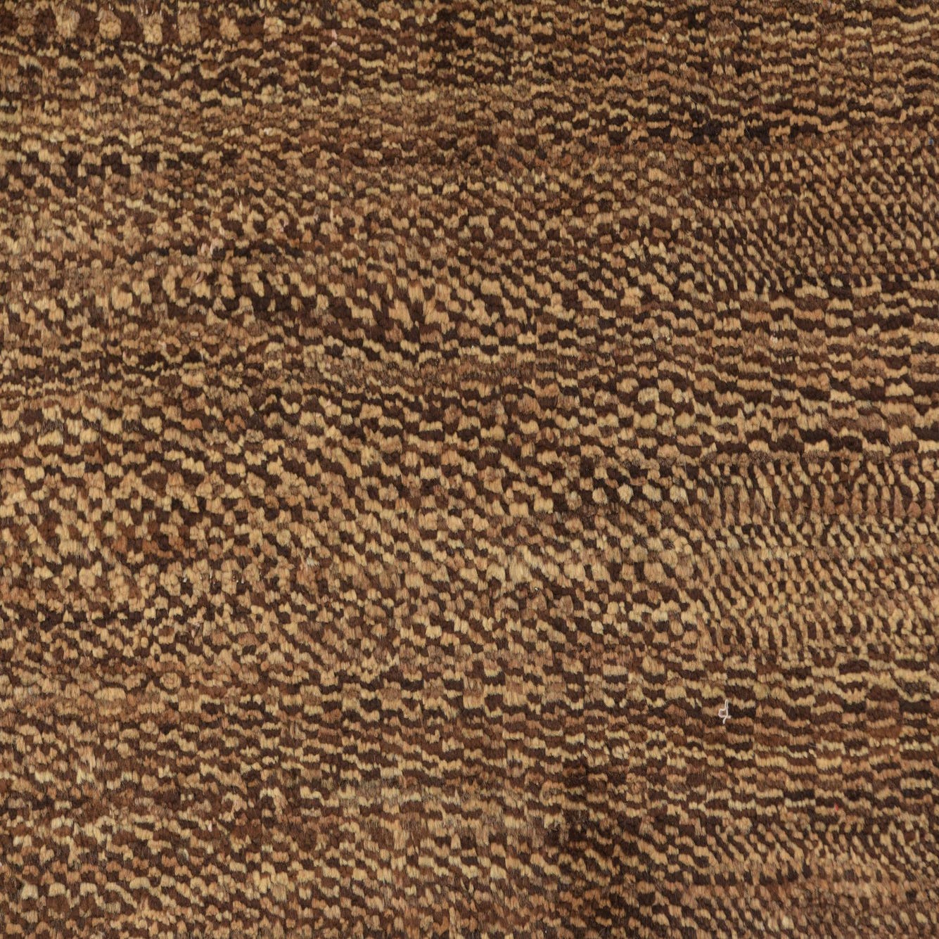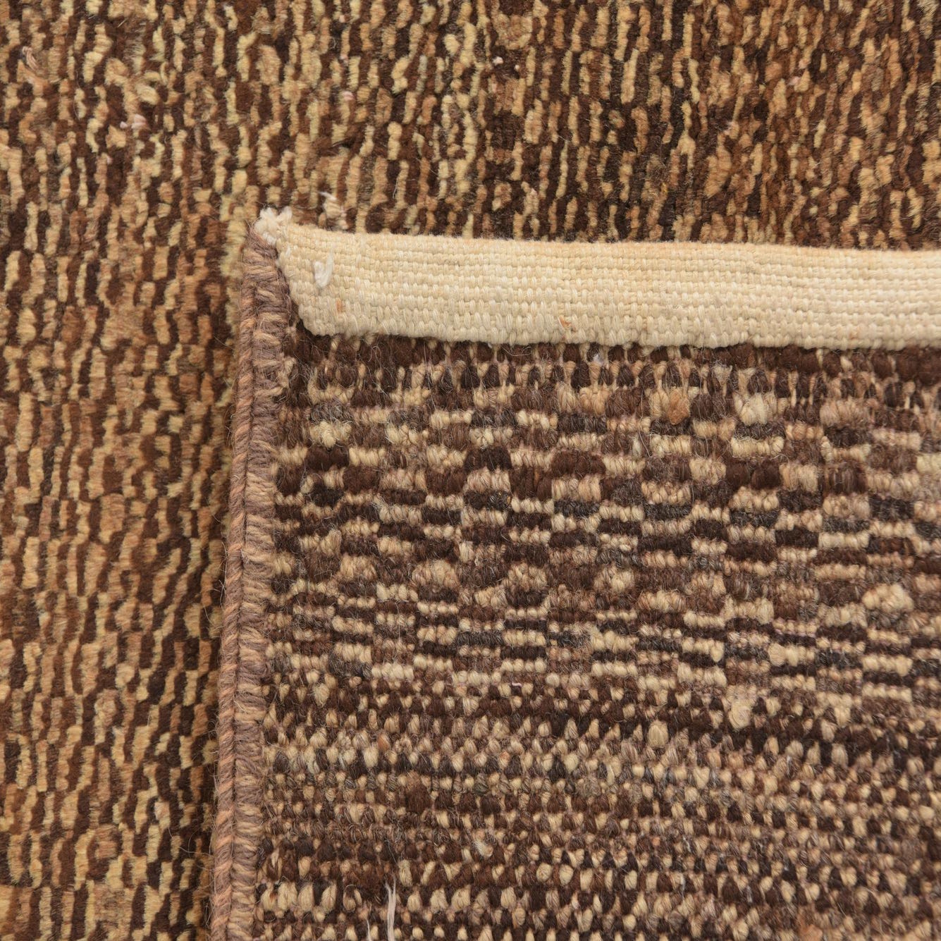 A rectangular 5x8 Kashkuli Gabbeh rug in varying shades of brown and tan, featuring a modern abstract pattern.