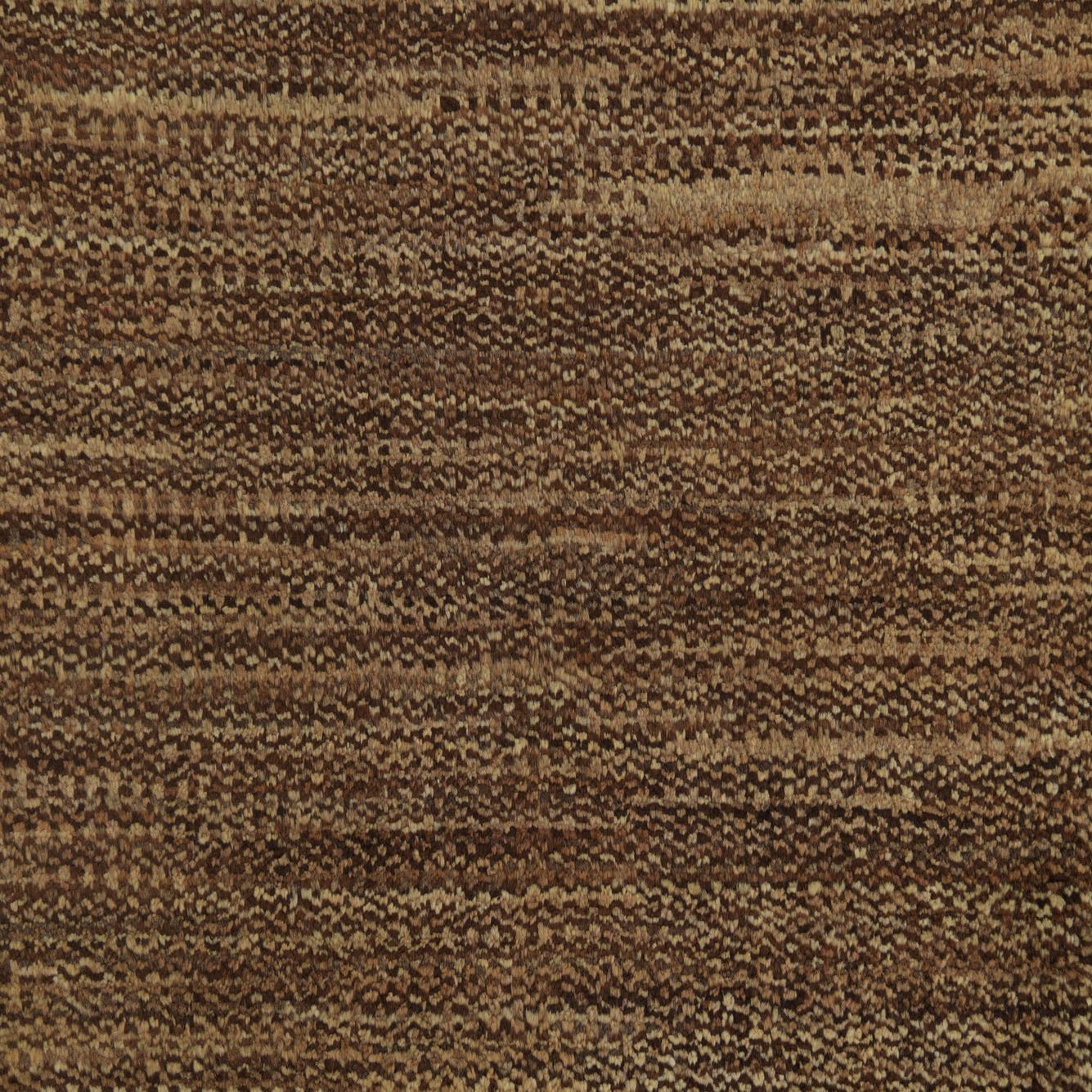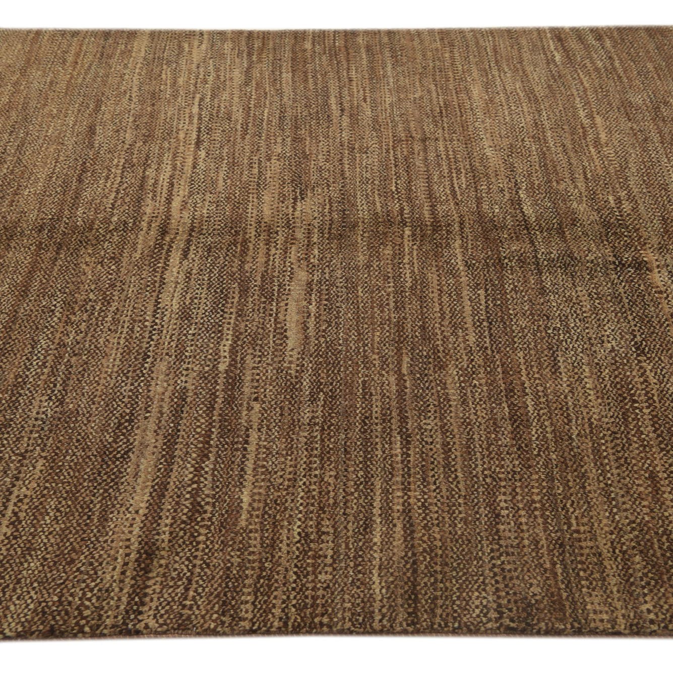 A 5x8 rectangular Kashkuli Gabbeh rug in varying shades of brown and tan, featuring a textured, modern abstract pattern.