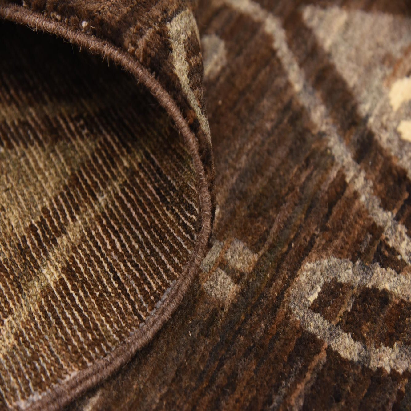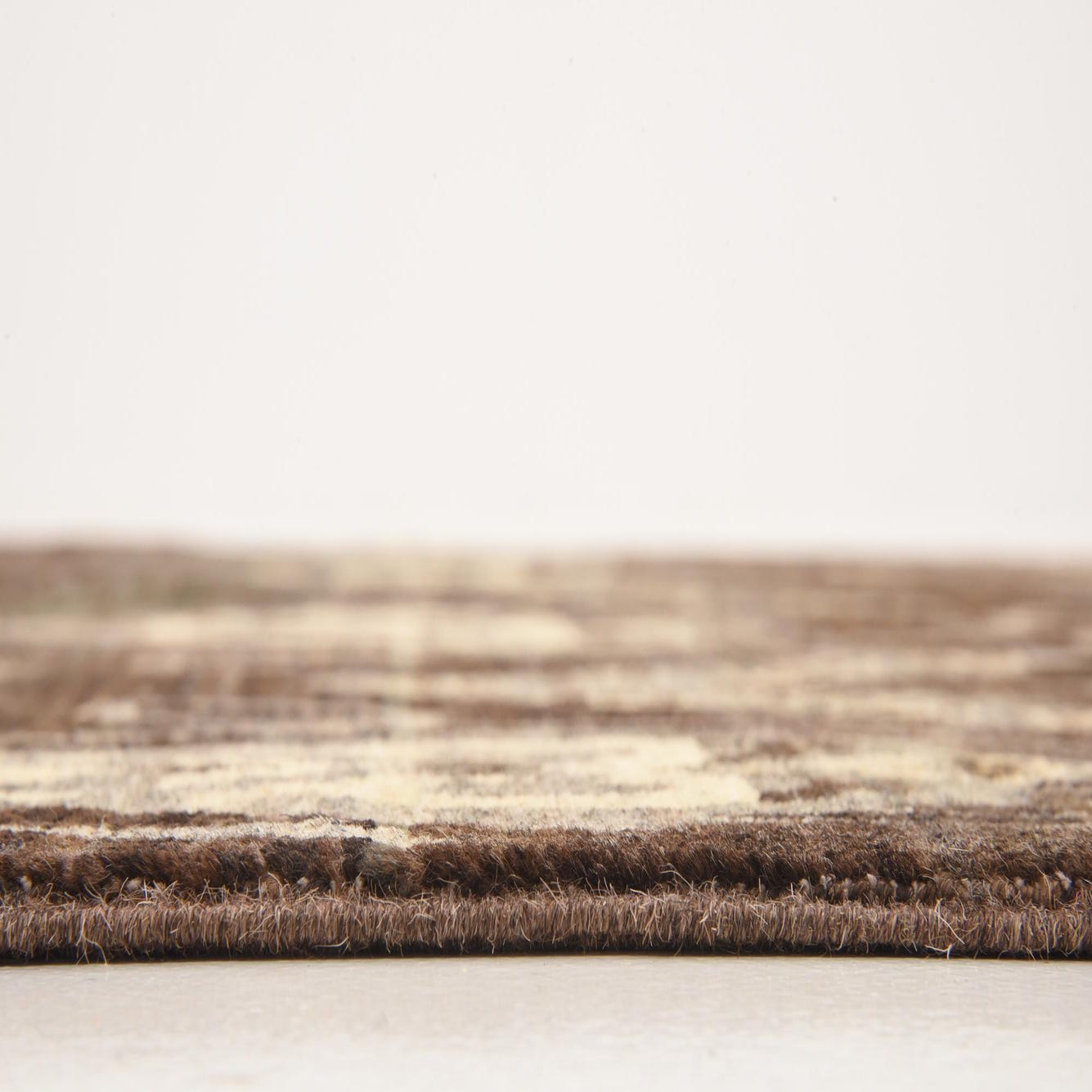 Primary color is Brown. Colors in this rug include: Brown, Beige, Cream.