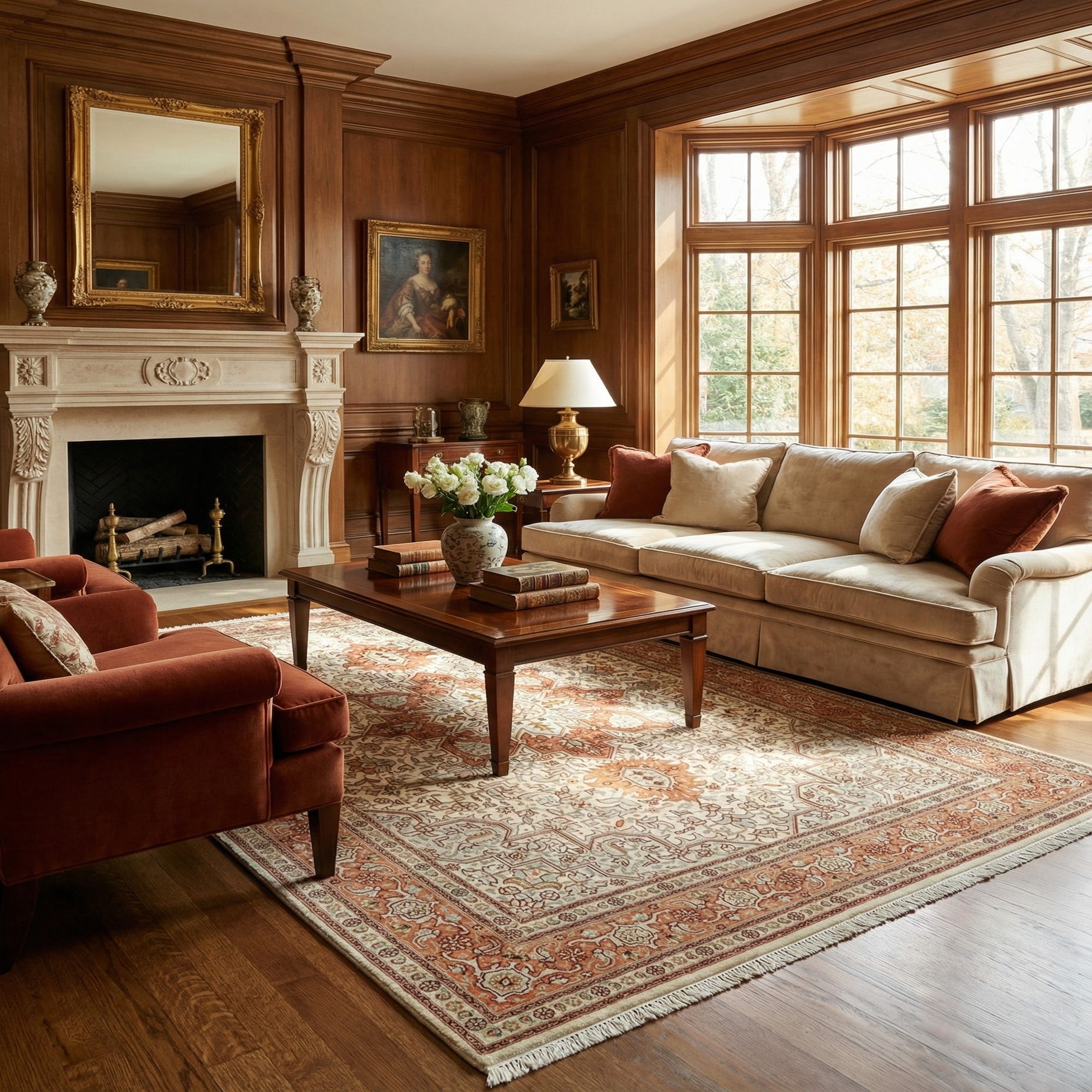 This rug works well as an anchor for a living area or beneath a seating arrangement where its medallion can read clearly, and it adapts easily to both traditional and transitional interiors. Pair it with warm wood furniture, neutral upholstery, and textured linens to emphasize the rug’s earthy tones, or use grey and olive accent pieces to draw out the cooler notes. In a bedroom it adds warmth and pattern when layered with simple bedding; in a formal dining room it complements classic dining sets and soft upholstery.
