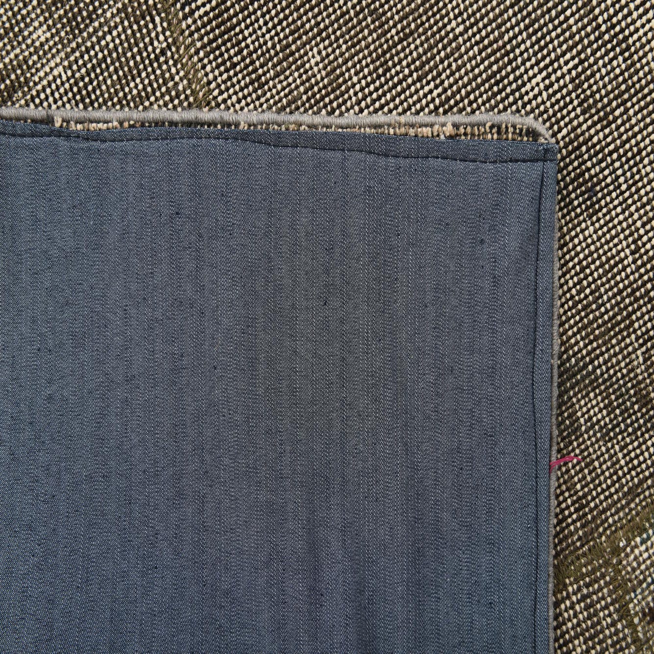 The Ultra Vintage Collection presents a 5x8 hand-knotted rug crafted from 100% wool, offering a warm and tactile surface underfoot. This rug displays a patchwork of distressed patterns, which captures a well-loved and time-worn appearance. The predominant color is an earthy brown, set against accents of ivory and gray that create visual depth and interest.