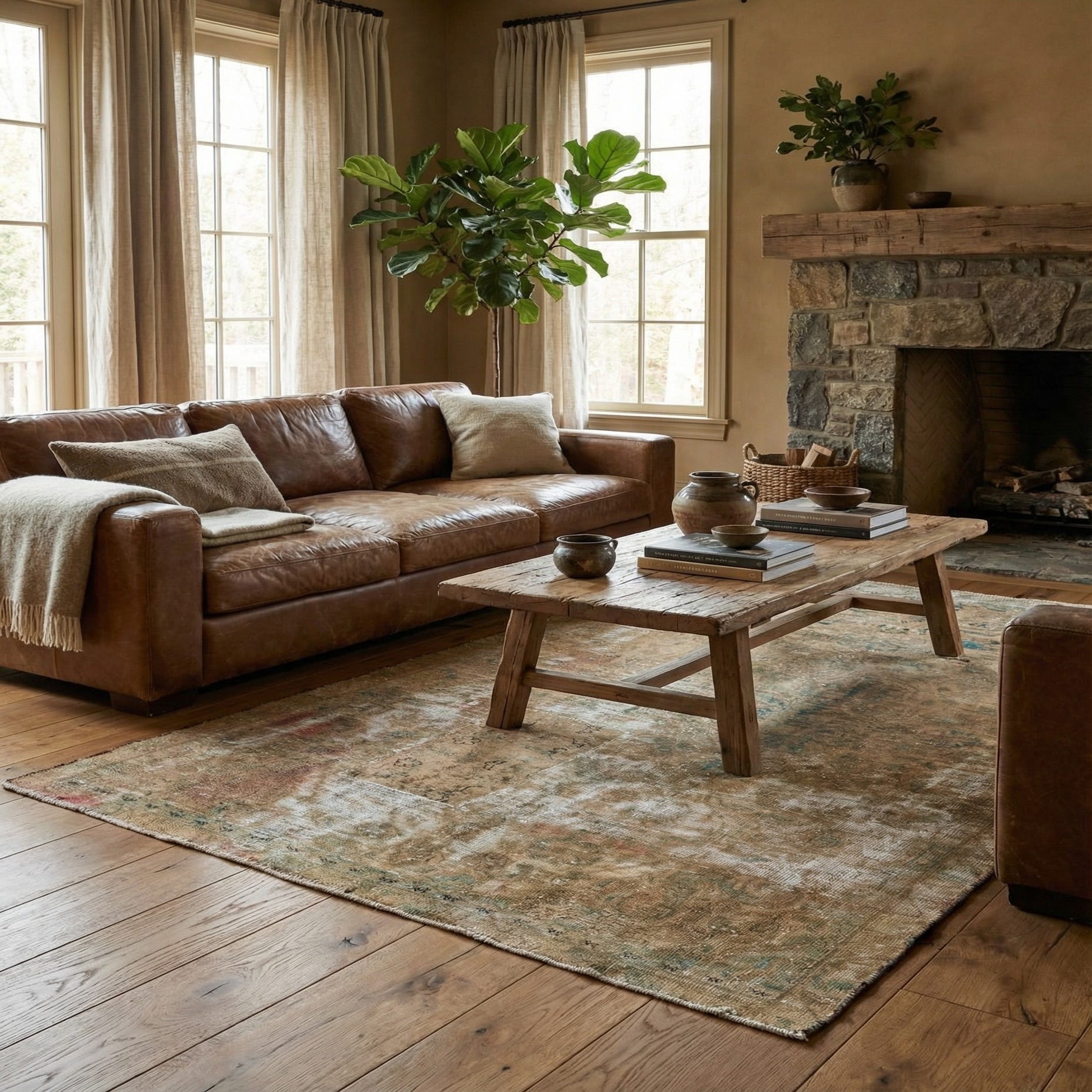 This rug would integrate seamlessly into interiors that celebrate an eclectic mix of old and new, such as a contemporary space with vintage accents or a classic setting in need of a subtle modern touch. It could serve as a grounding element in a living room, add sophistication to a dining area, or introduce a sense of history to a study or bedroom.