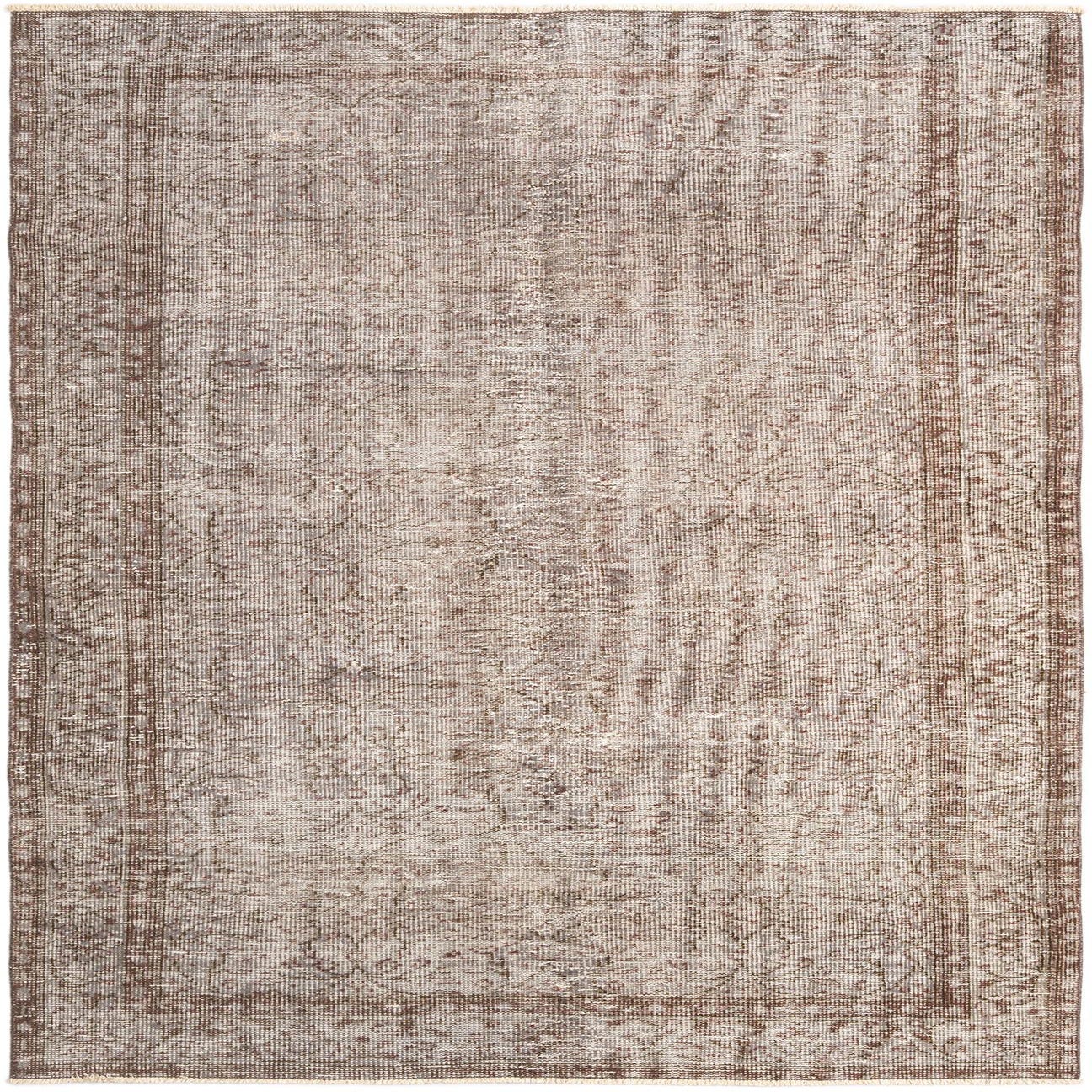 A 5x8 rectangular Rugs.com Vintage Royal Persian wool rug in shades of brown and tan, featuring a distressed traditional pattern.