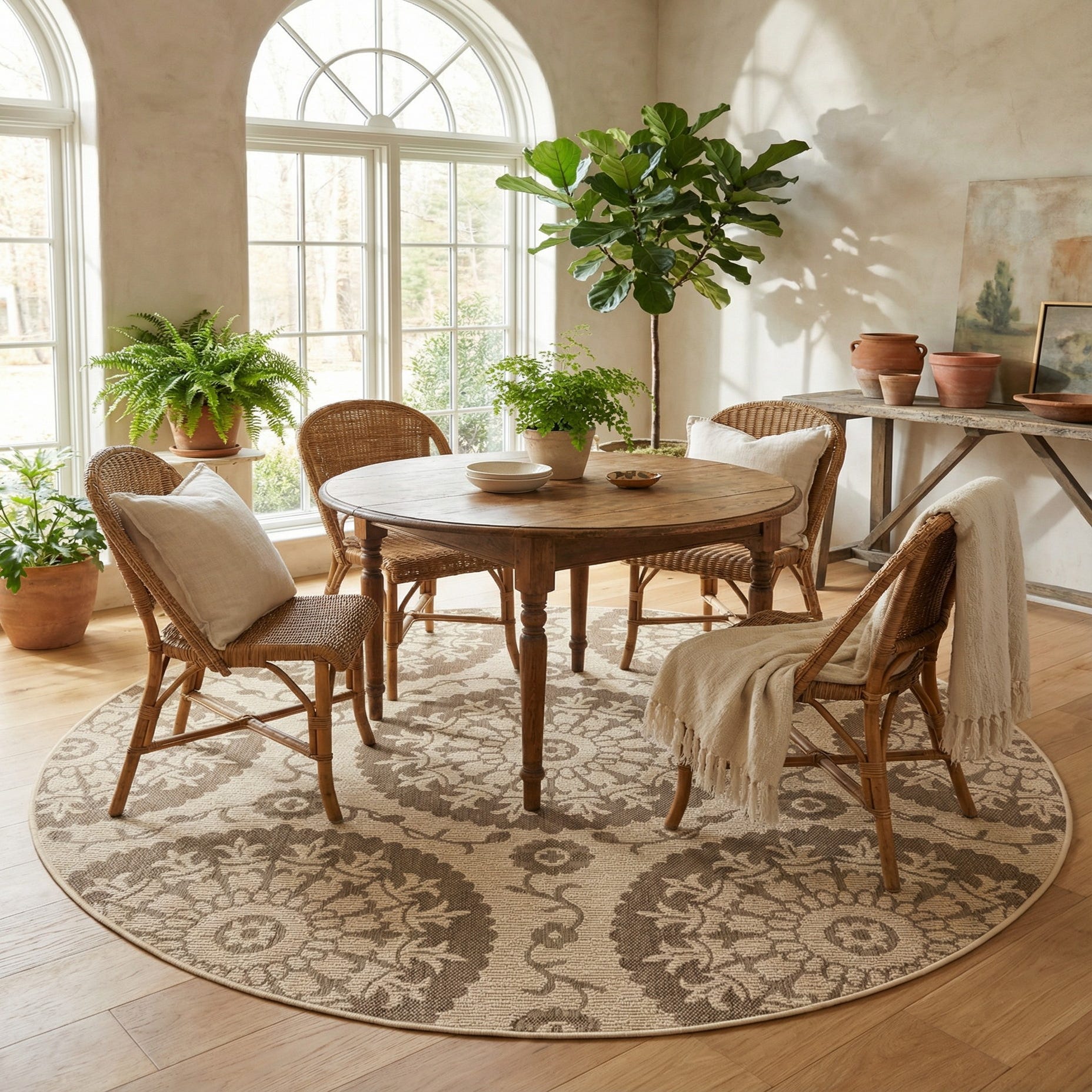 6' x 6' Washable Botanical Indoor / Outdoor Round Rug