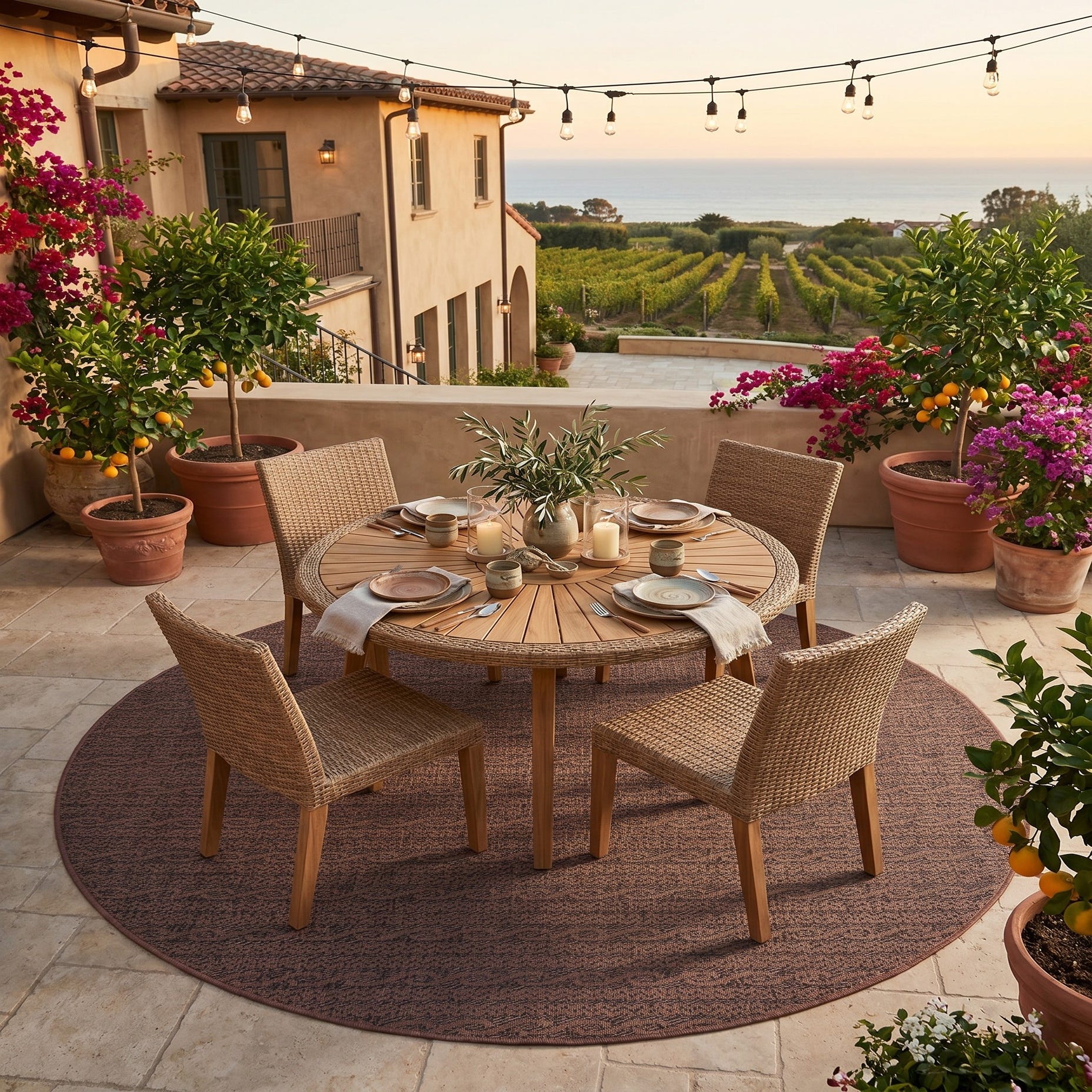 This rug looks rich and feels very durable. I shopped for a couple of weeks online everyday in search of a reasonably priced rug that was good looking and had great reviews. All of the outdoor rugs that I could afford and that looked great had terrible reviews about how horribly made they were. I came upon this one it had wonderful reviews and it was on sale for less than 100.00! It came nicely rolled instead of folded like other sites which meant it had no permanent creases I unrolled it and it was sturdy expensive looking and it laid perfectly flat! You won't be sorry if you purchase this!