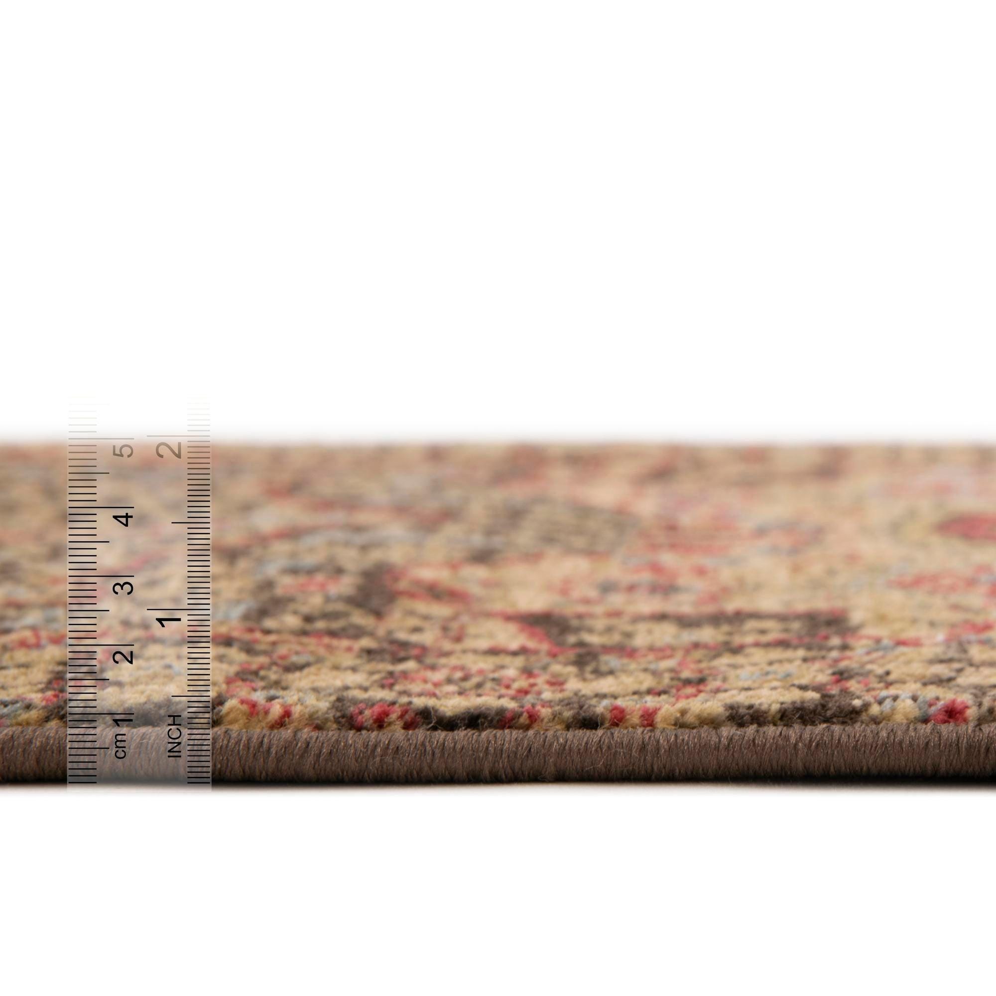 Machine made from 100% polypropylene, the rug has a low, dense pile that feels soft underfoot with a slight, textile sheen. The construction gives the surface a consistent texture you can run your hand across and a steady weight that lies flat in high-traffic areas. This runner works well in narrow spaces like hallways and entryways, as a kitchen or stair runner, or layered in a transitional living area. It pairs naturally with warm wood floors, leather seating, and brass or matte-black accents, and suits traditional, transitional, or eclectic interiors where a touch of classic pattern and warm color is wanted.