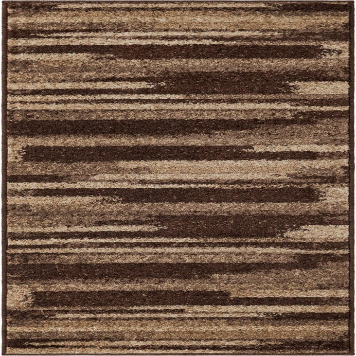 A warm, modern runner with a brown background offset by irregular horizontal bands in beige and light brown. The pattern is abstract and painterly—broad, brushstroke-like stripes layered across the field to create a sense of movement and depth. The pile has a low-to-medium profile with a dense, slightly cushioned hand that highlights the tonal shifts and gives the surface a subtly textured feel when you run your fingers across it.