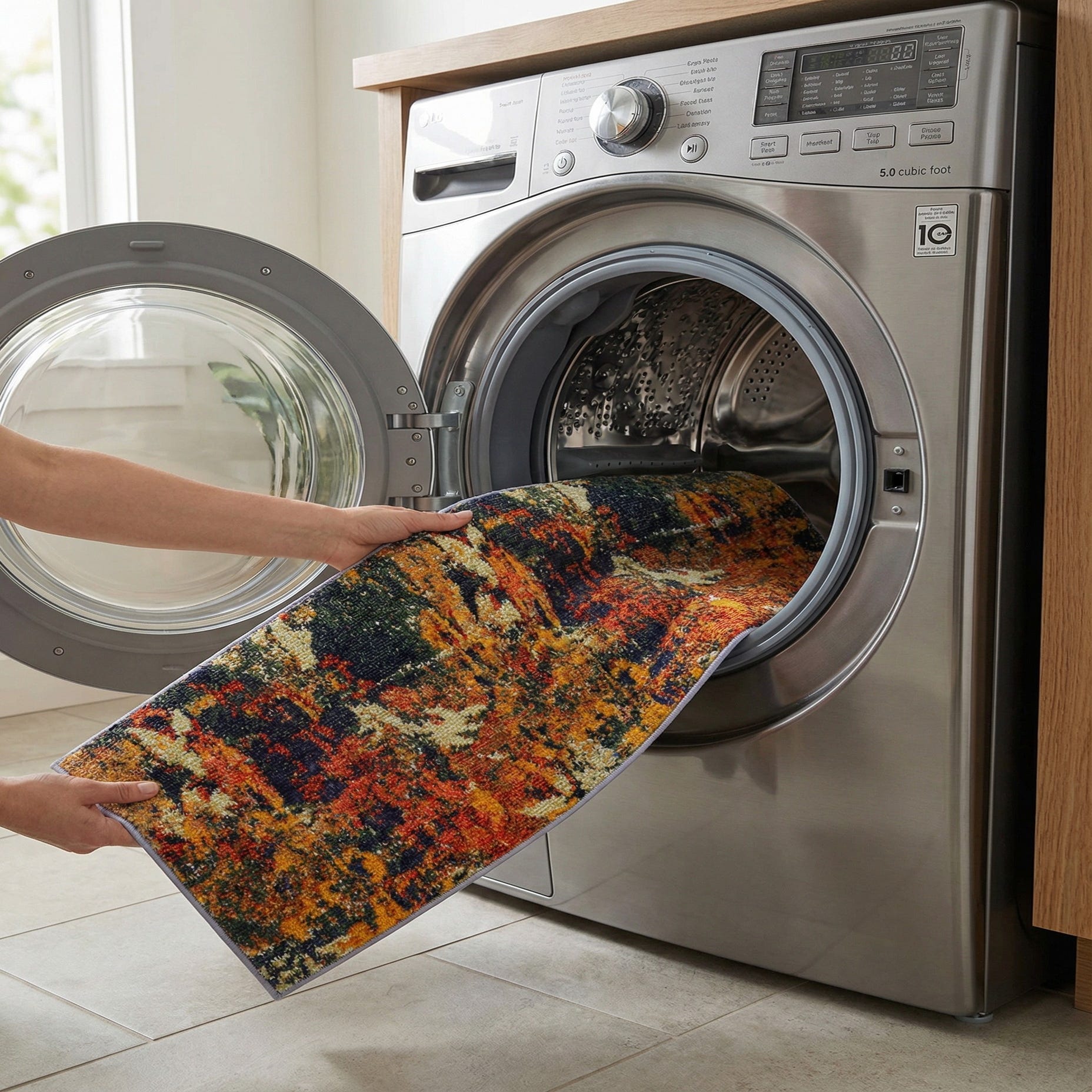 This runner works well in narrow circulation spaces where you want to introduce color and energy—hallways, entryways, and kitchen galley layouts are natural fits. Pair it with warm wood floors and leather or matte metal furnishings for a contemporary eclectic scheme, or use it to add contrast to a modern industrial space with concrete or darker finishes. It also layers nicely in bohemian or mid-century inspired rooms when combined with solid textiles and coordinated accent pieces.