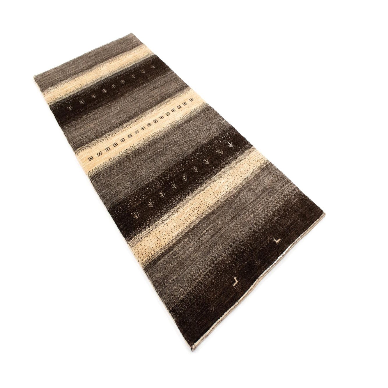 The Kashkuli collection showcases a sophisticated hand-knotted wool runner, measuring 6 feet in length. Crafted with a dedication to traditional techniques, this runner features a balanced array of brown, beige, and black hues. The primary brown background sets the stage for a rhythmic sequence of bands varying in saturation and detailed with delicate motifs. Subtle textures emerge from the high-quality wool, offering depth to the minimalistic design.
