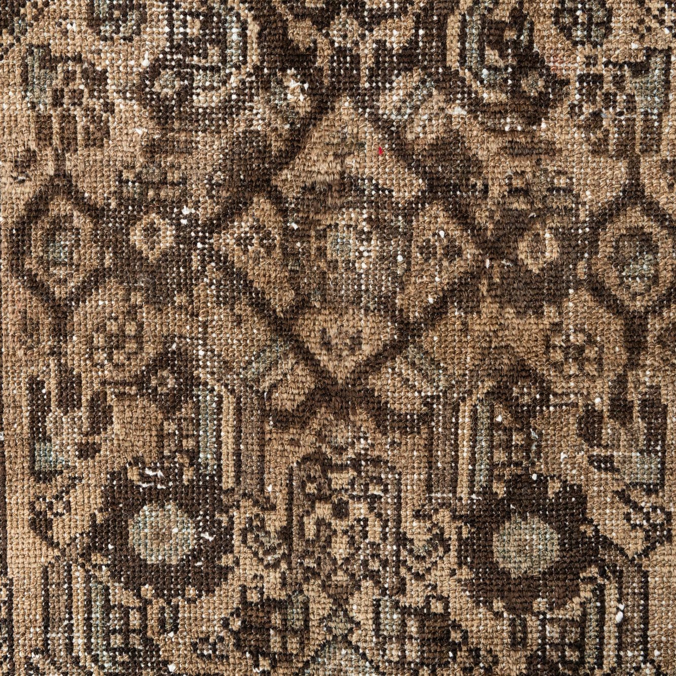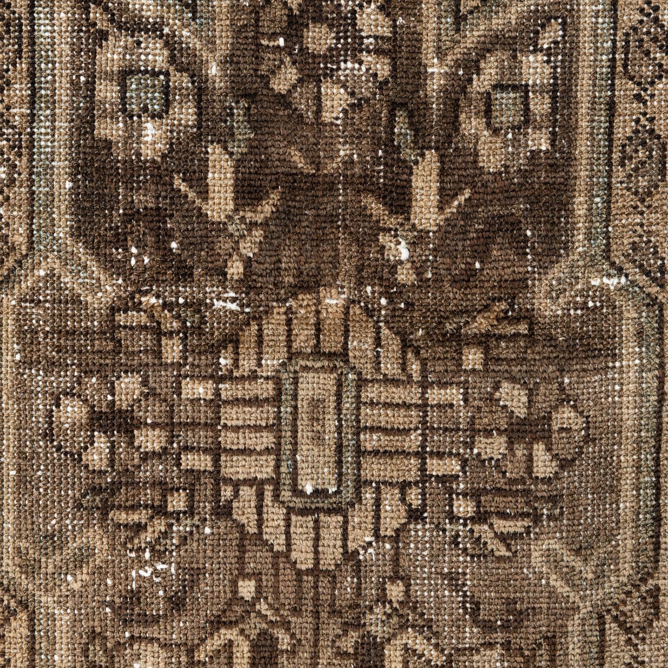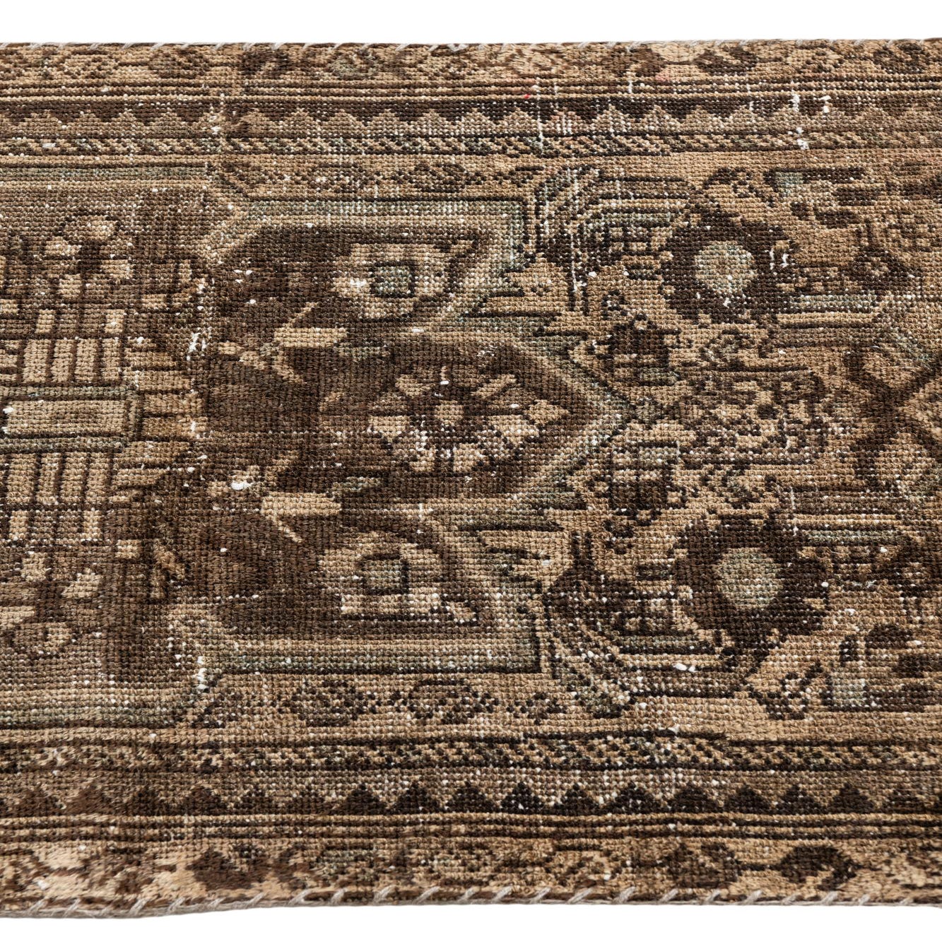 Part of the Ultra Vintage Collection, this 6-foot hand-knotted runner is a testament to craftsmanship and timeless elegance. The rug's intricate patterns and symmetrical designs draw inspiration from classic motifs, executed in shades of brown and ivory. The backdrop is a warm brown hue that provides a welcoming depth to the elaborate patterning.
