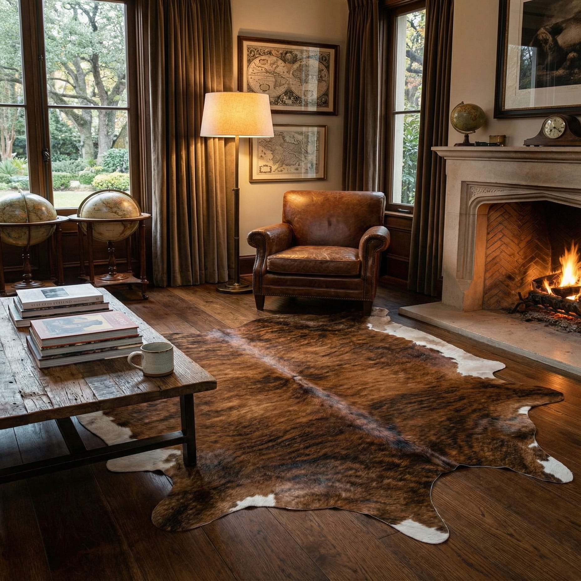 The surface has a low, hair-on finish that feels smooth to the touch with a slight sheen where the light catches the hair; the leather underside provides structure and lays flat on hard floors. This piece pairs well with rustic or farmhouse interiors, layered over hardwood or stone to soften the floor, and also works in modern industrial spaces as a warm contrast to metal and concrete. Use it beneath a coffee table, at the foot of a bed, or as an entry statement to add tactile warmth and natural texture to the room.