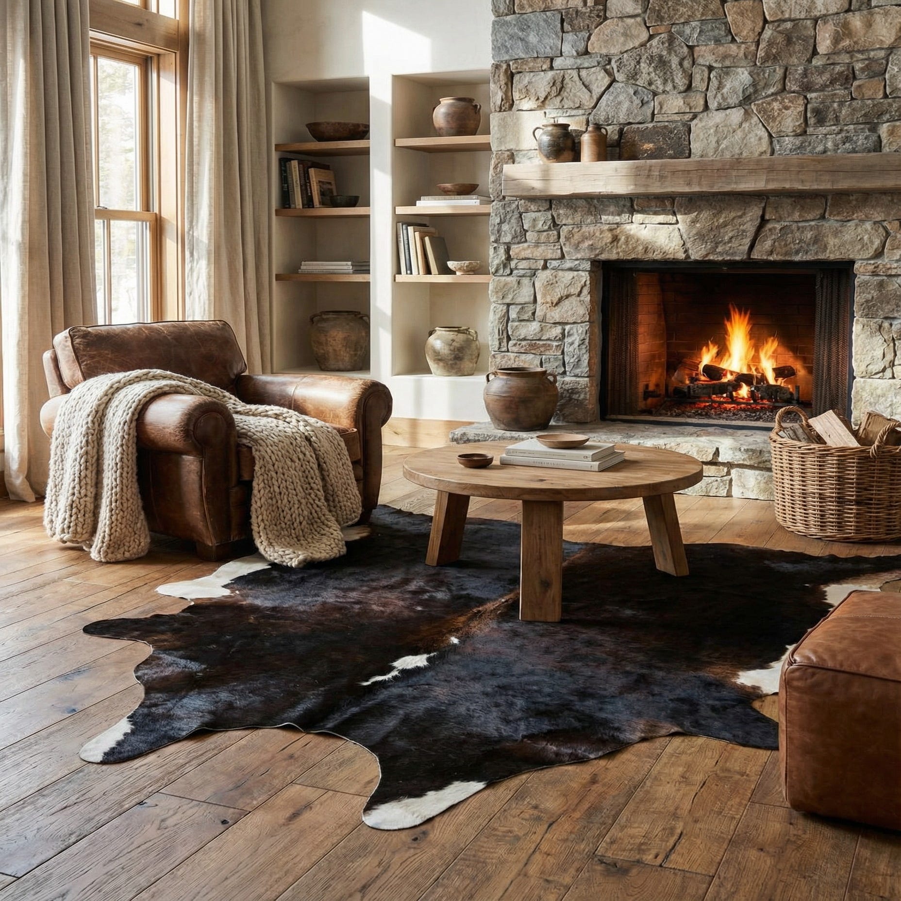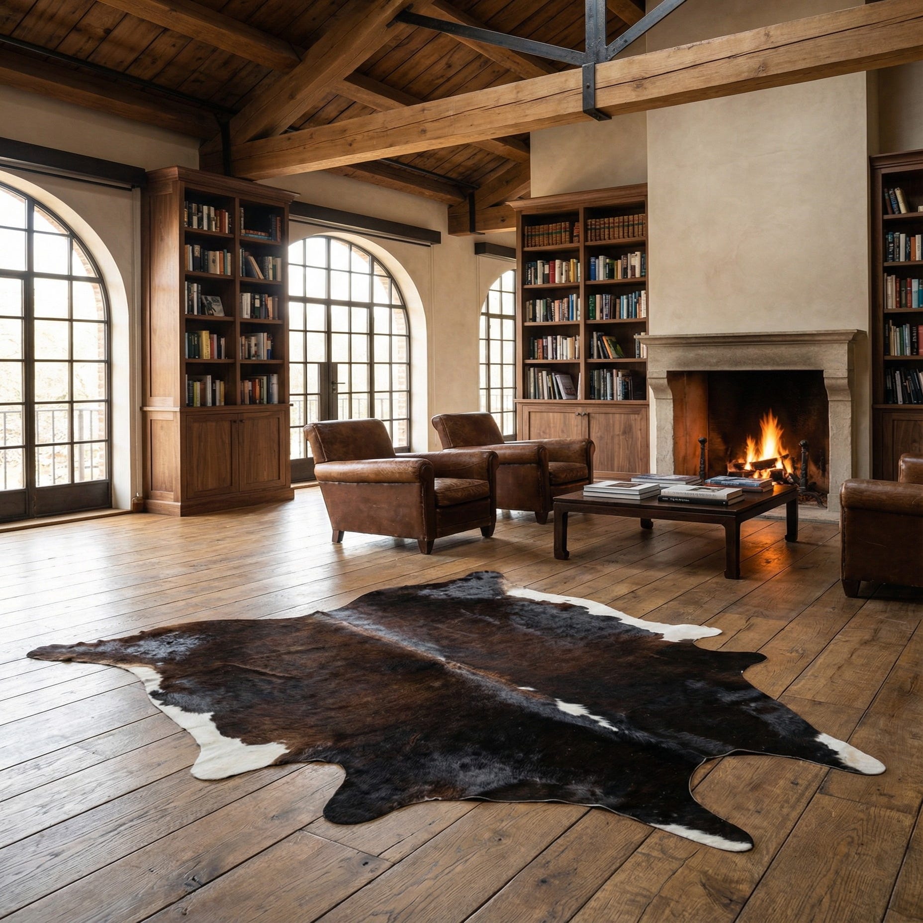 6' 1 x 6' 8 Cowhide Leather Square Rug