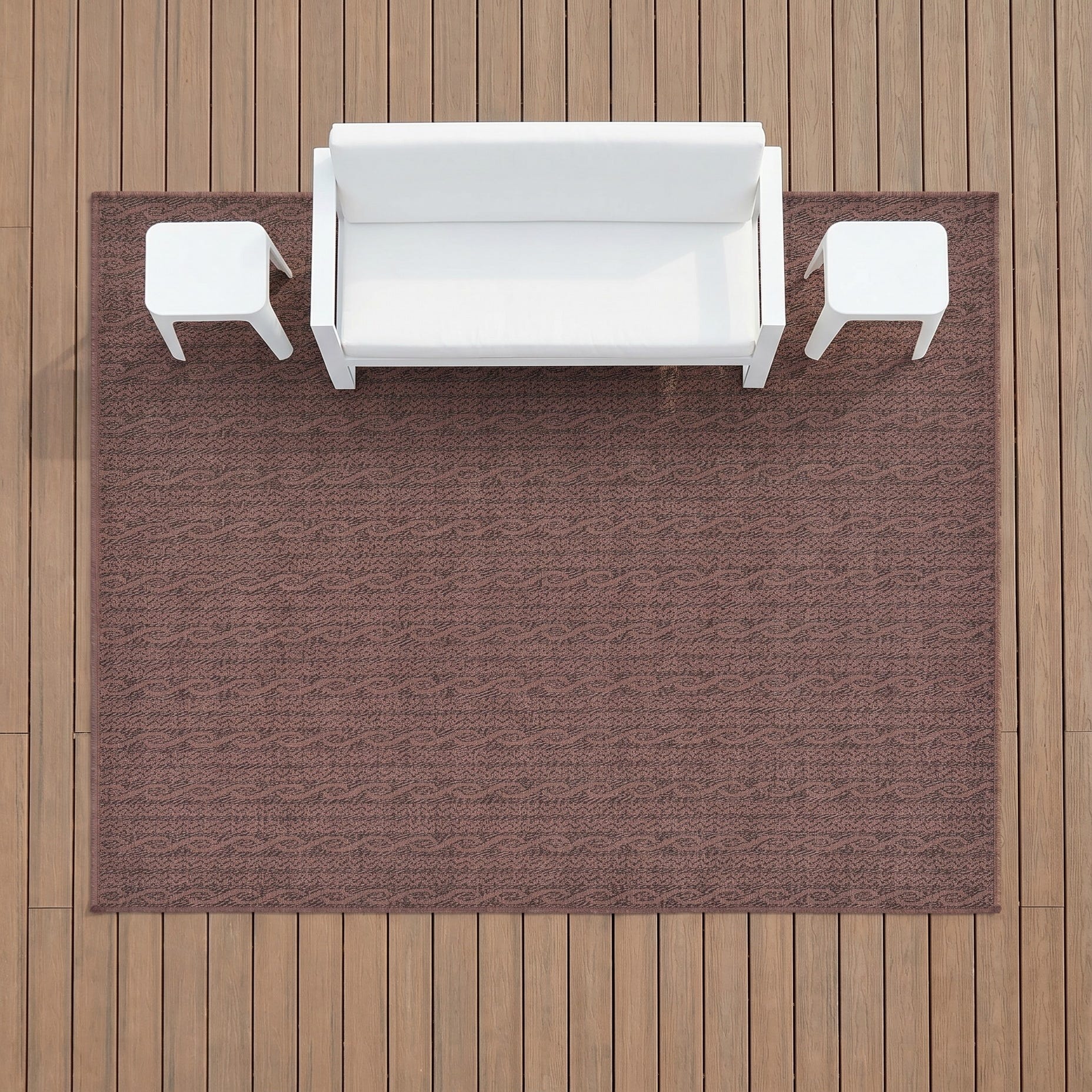 We put this rug on our deck and it is wonderful. Pictures don't do it justice. If you're looking for a gray rug this is the one.