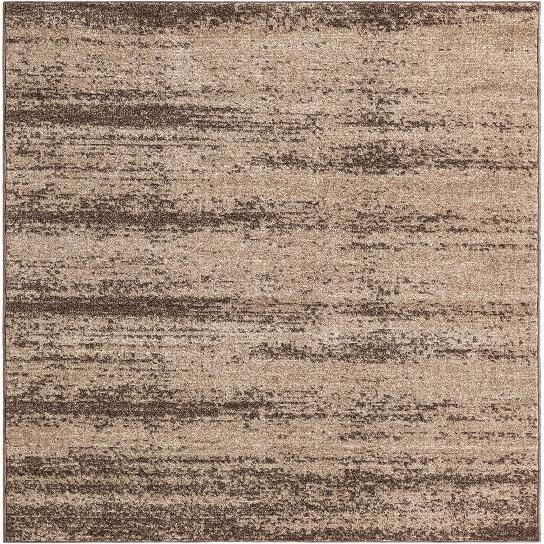 A 6x9 rectangular area rug featuring an abstract pattern of varying brown and tan shades, suitable for a living room.