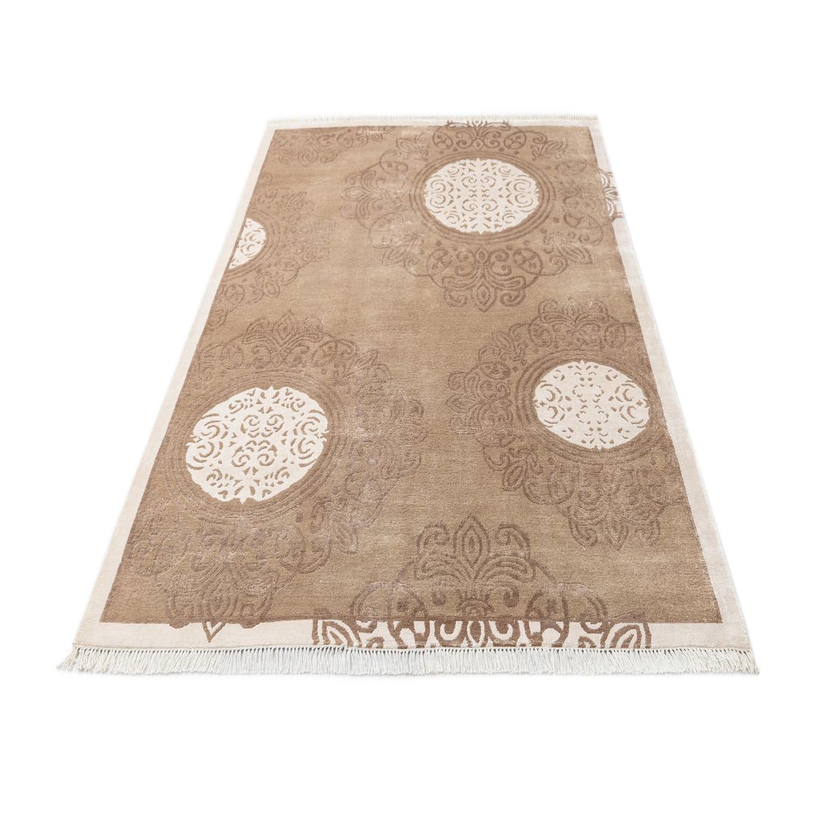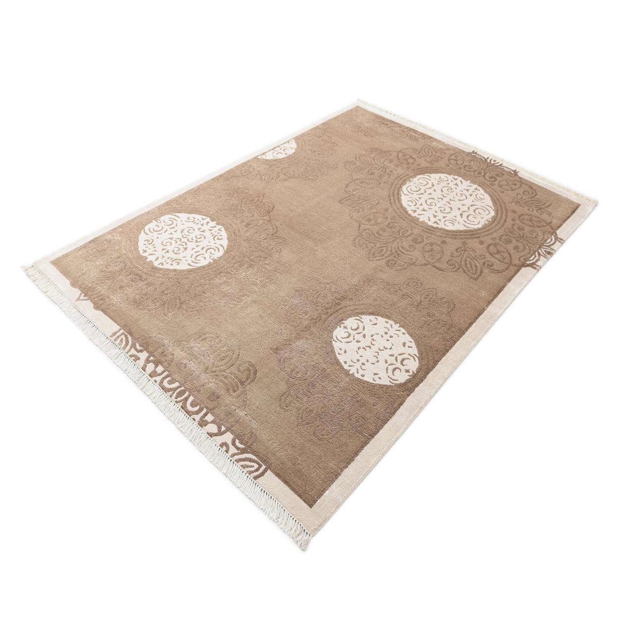 A 6x9 rectangular Darya rug in shades of brown and tan, featuring a modern medallion pattern.