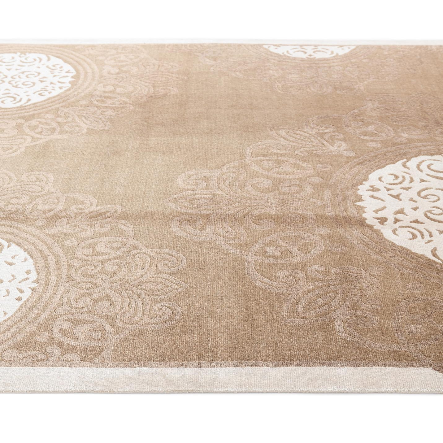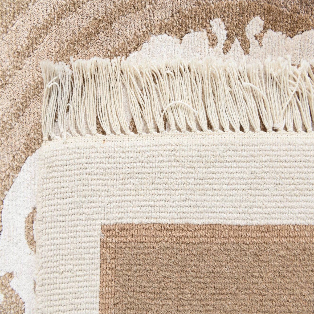 The neutral color scheme and classic design of this rug make it versatile for a variety of interior design settings. It could serve as a sophisticated anchor in a living room, add warmth to a study, or complement the refined aesthetic of a dining area. The rug's subdued hues would pair well with both lighter color schemes that aim to create an airy, open feel, and darker palettes where it can introduce a sense of balance and calm.