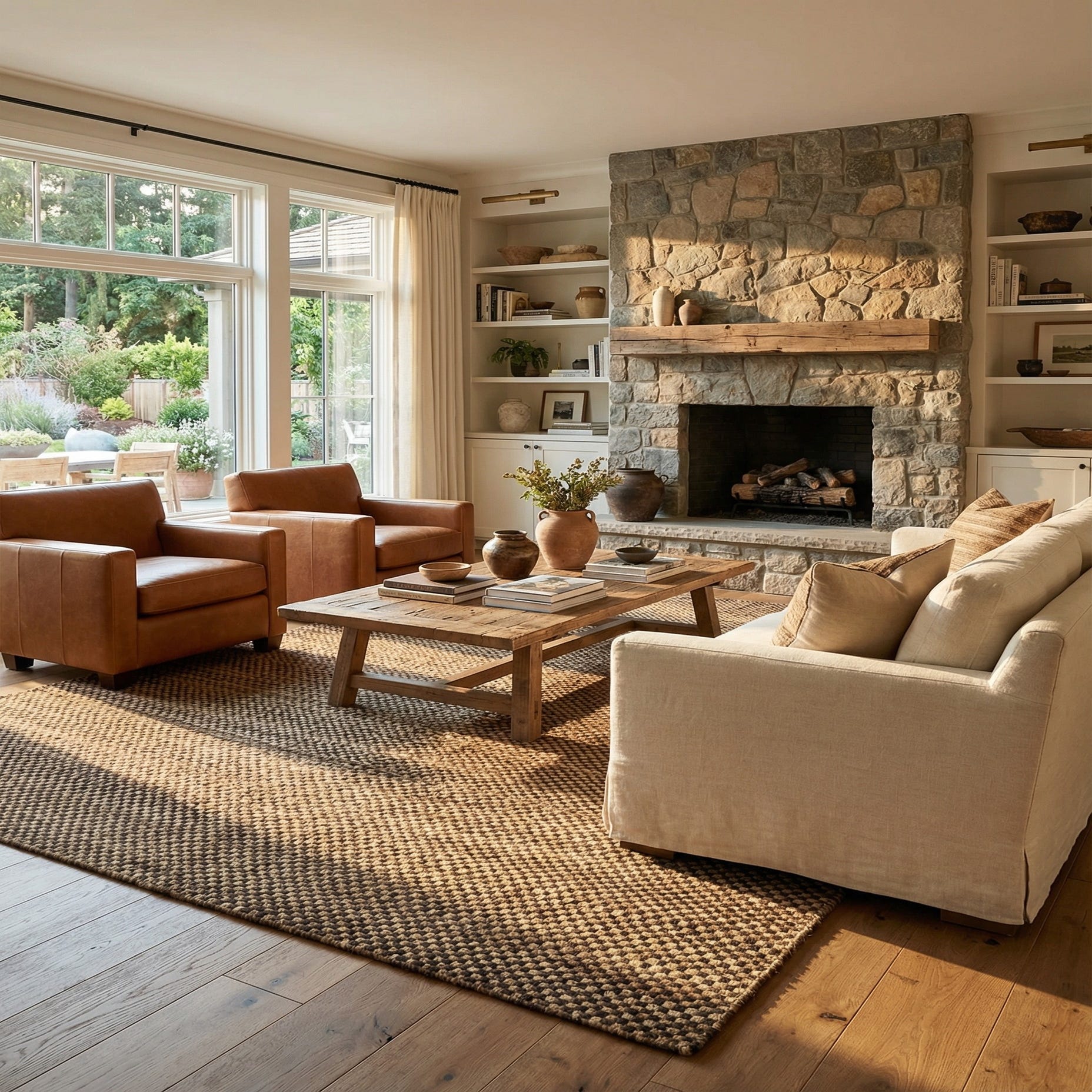 This piece works well anchored beneath a seating area to add warmth to wood or concrete floors, or layered in a casual living room with leather or linen upholstery. It pairs naturally with rustic and modern farmhouse interiors, as well as mid-century or contemporary schemes that favor natural materials and earthy tones. Use it in a study or den to introduce texture without competing with patterned fabrics, or place it in an entry or dining space to ground the room with its durable, hand woven wool composition.