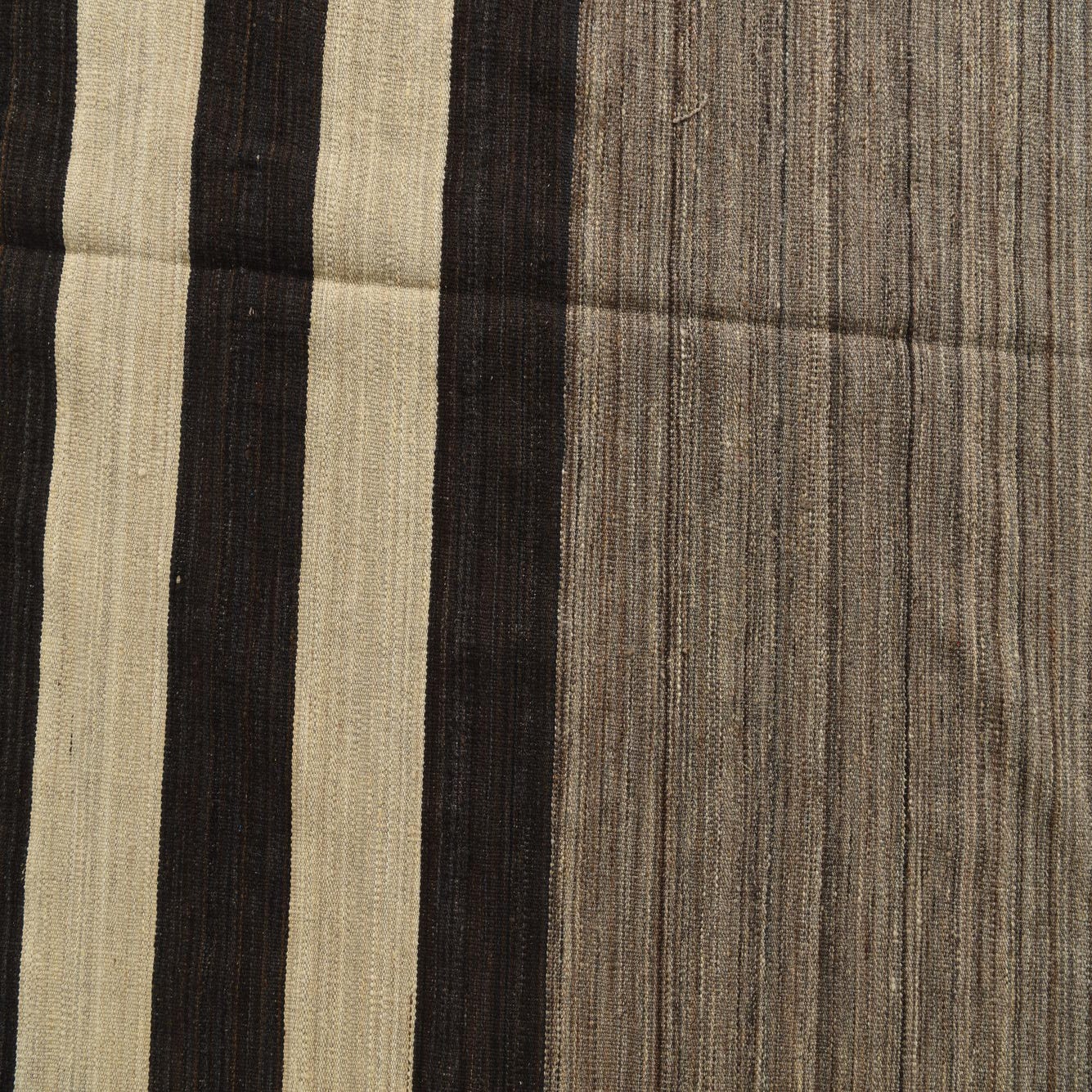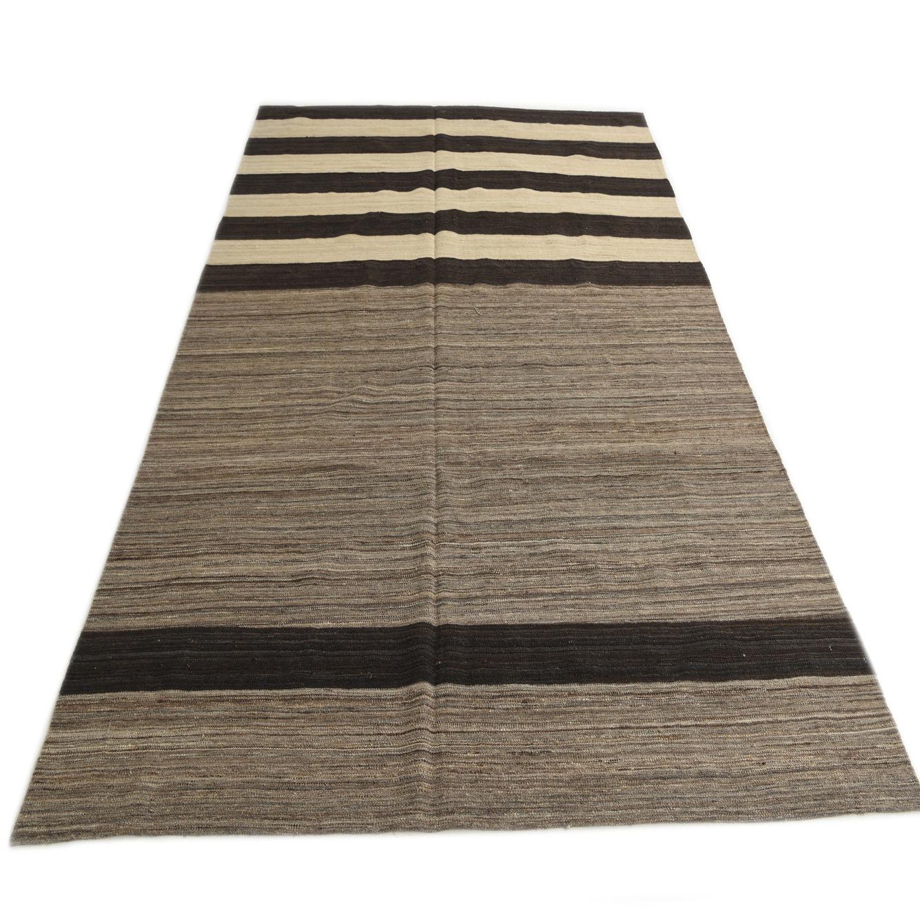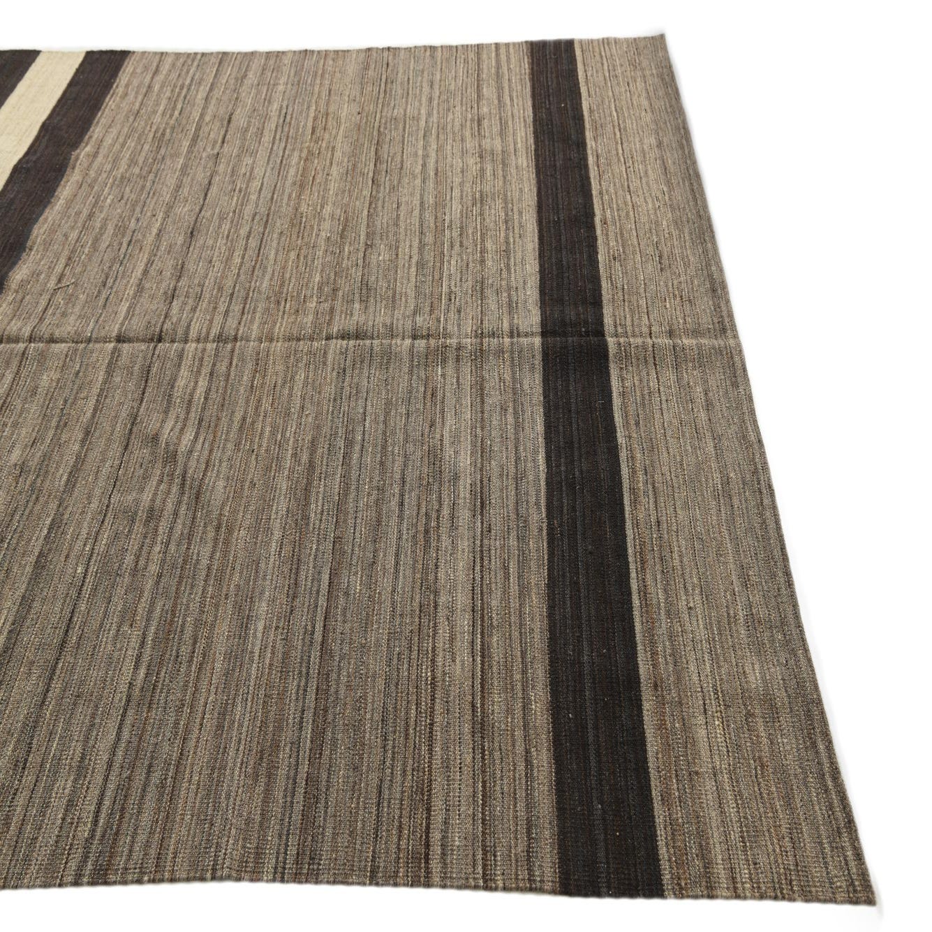 A 6x9 rectangular Kilim Modern rug with a flatweave, featuring horizontal stripes in varying shades of brown and tan.