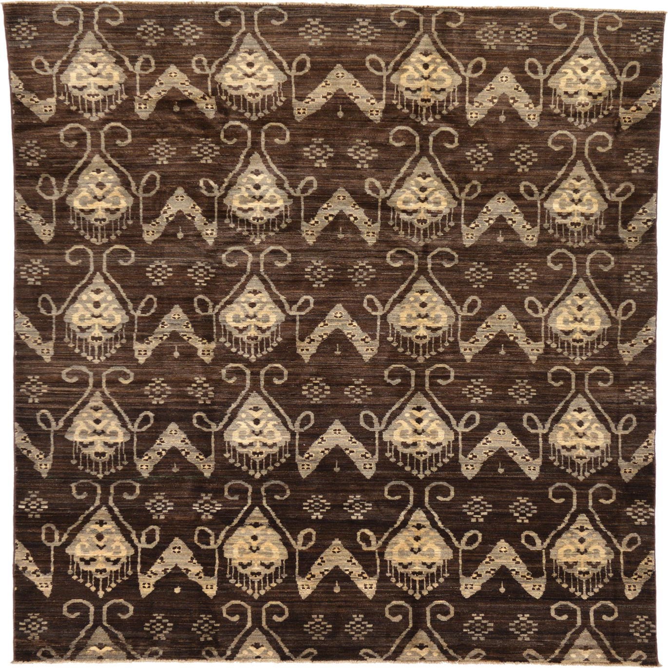 Primary color is Brown. Colors in this rug include: Brown, Cream, Gray.