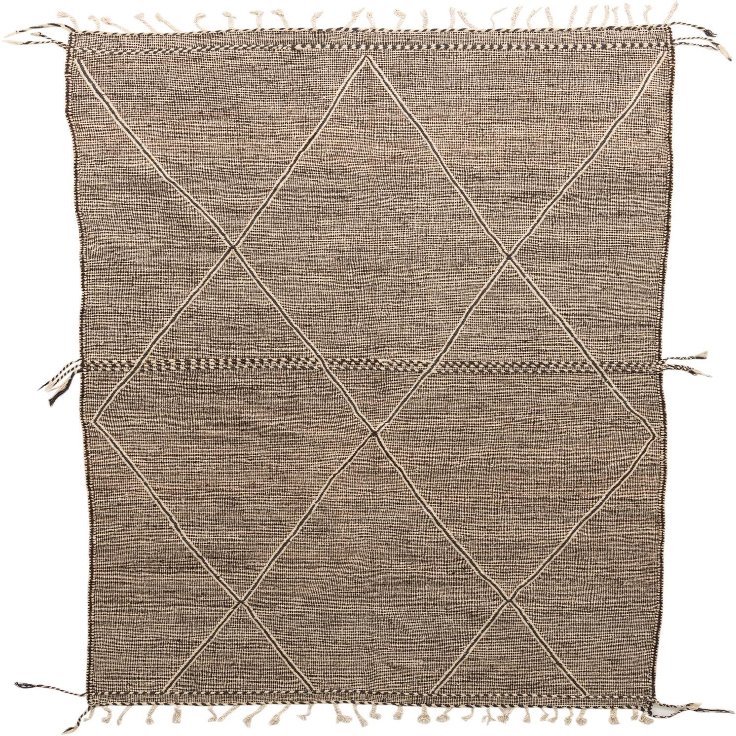 Primary color is Brown. Colors in this rug include: Brown, Ivory.