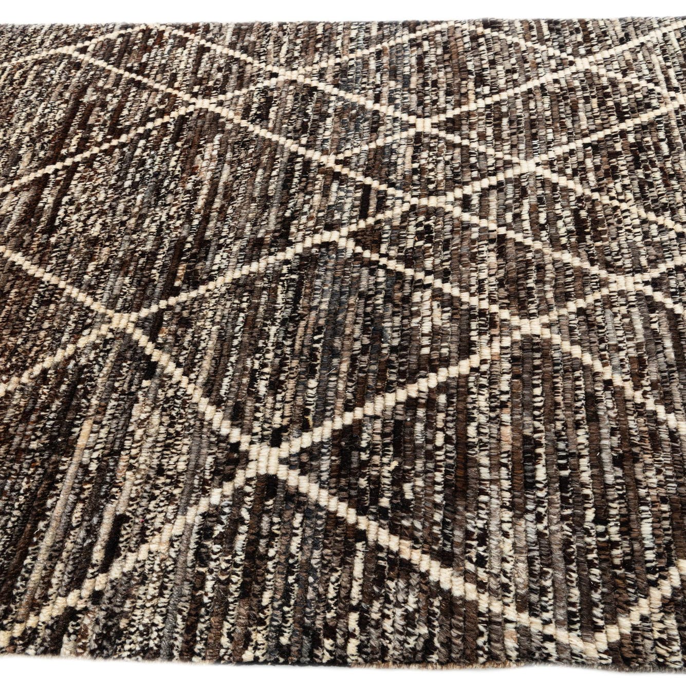 A 6x9 rectangular brown and tan tribal shag rug with a diamond pattern, suitable for a living room or bedroom.