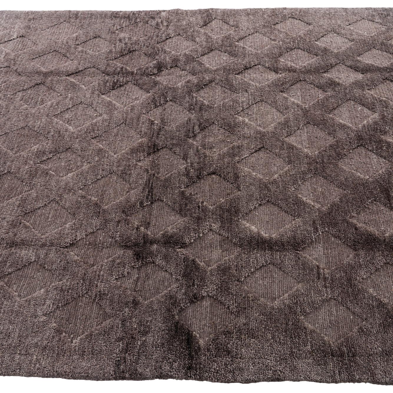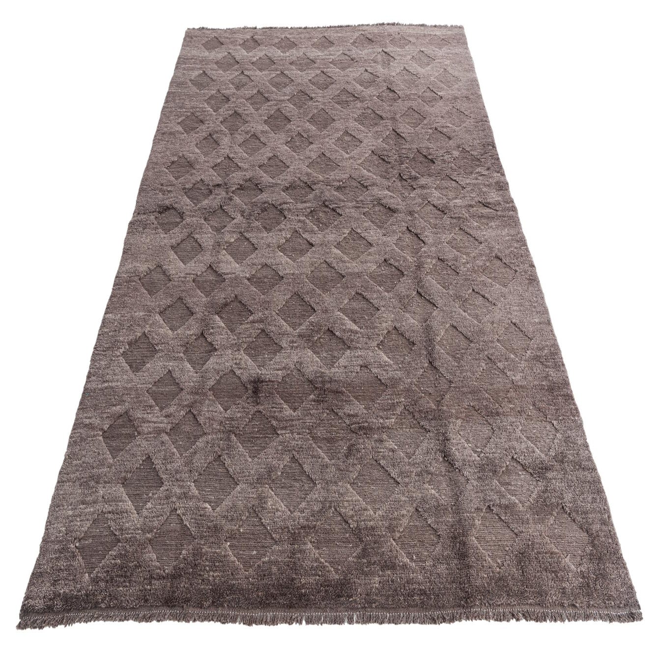 This Moroccan collection rug offers a sophisticated foundation to any room with its rich brown color palette and subtle geometric pattern. Hand-knotted from 100% wool, this 6x9 piece features a diamond motif that lends a sense of timeless elegance to its design. The deep brown hues provide a warm, earthy feel, while the high-quality wool construction ensures a soft texture underfoot.