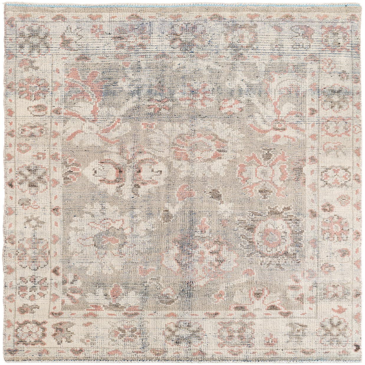 Primary color is Brown. Colors in this rug include: Brown, Ivory, Pink.