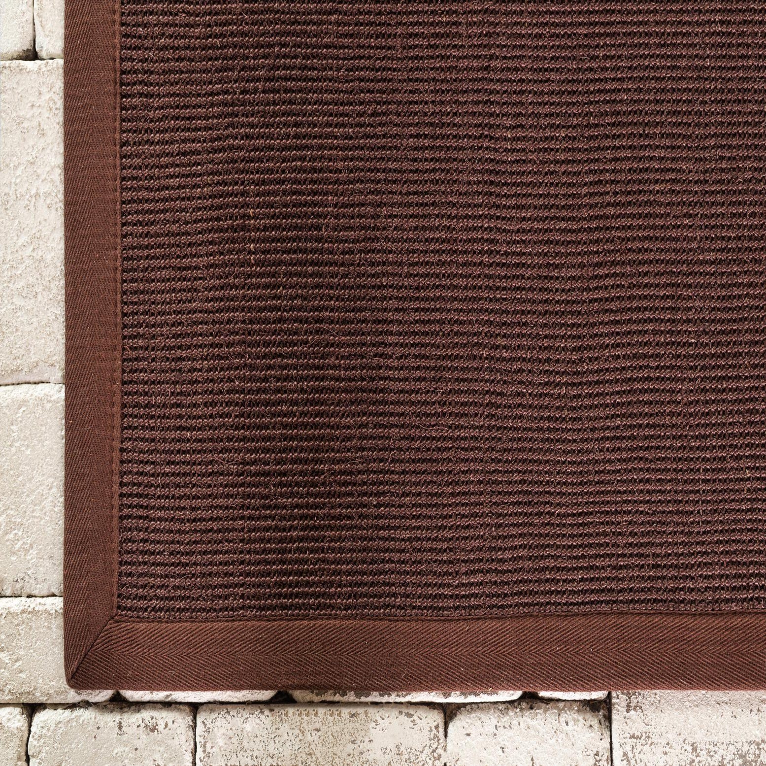 100% Natural Sisal. Handcrafted with a 2" cotton twill border and meticulously finished with non-slip backing.