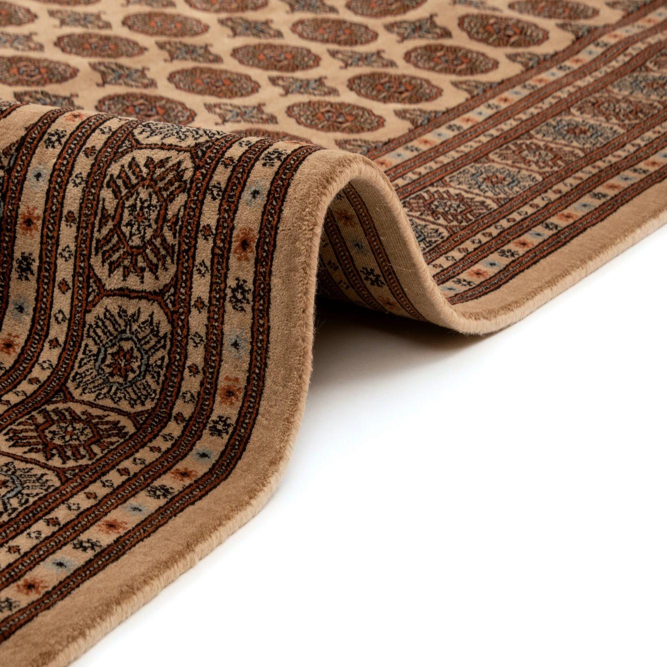A 6x9 rectangular Rugs.com Torkman wool rug in browns and tans with a traditional medallion pattern and fringe.