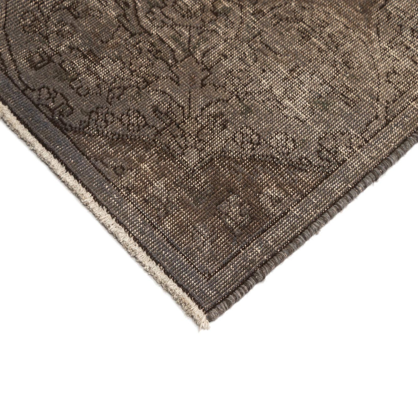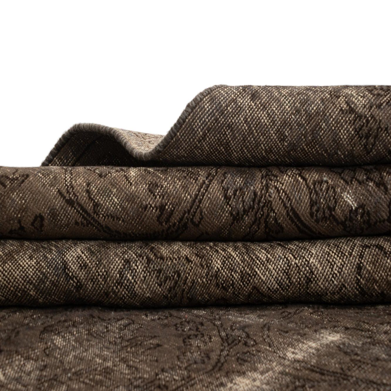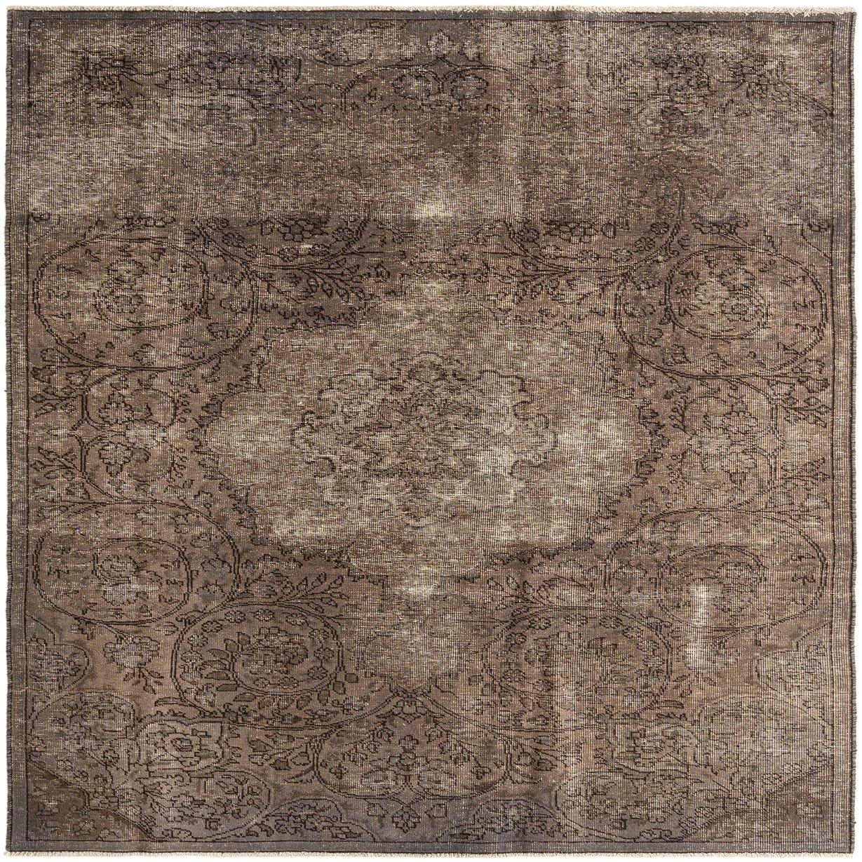 A 6x9 rectangular brown and tan Persian wool rug with a distressed, traditional floral medallion pattern.