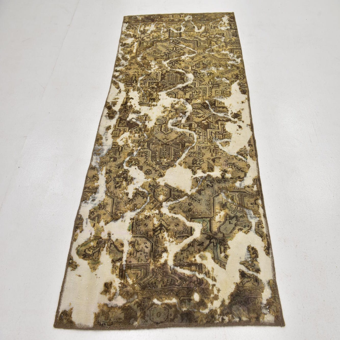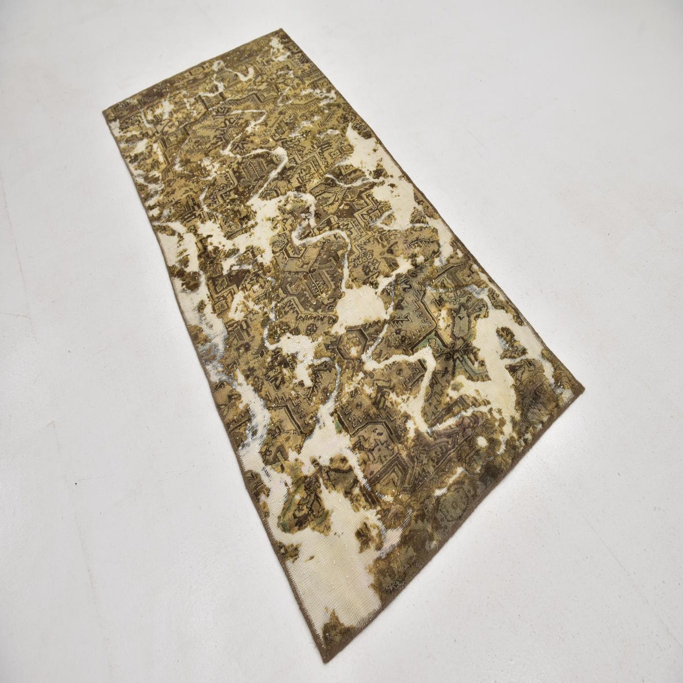 This Persian Ultra Vintage rug is an antique Persian Rug that has been washed, over-dyed, and then shaved down to a low pile. Look at the detail pictures to fully appreciate the uniqueness of this piece.
