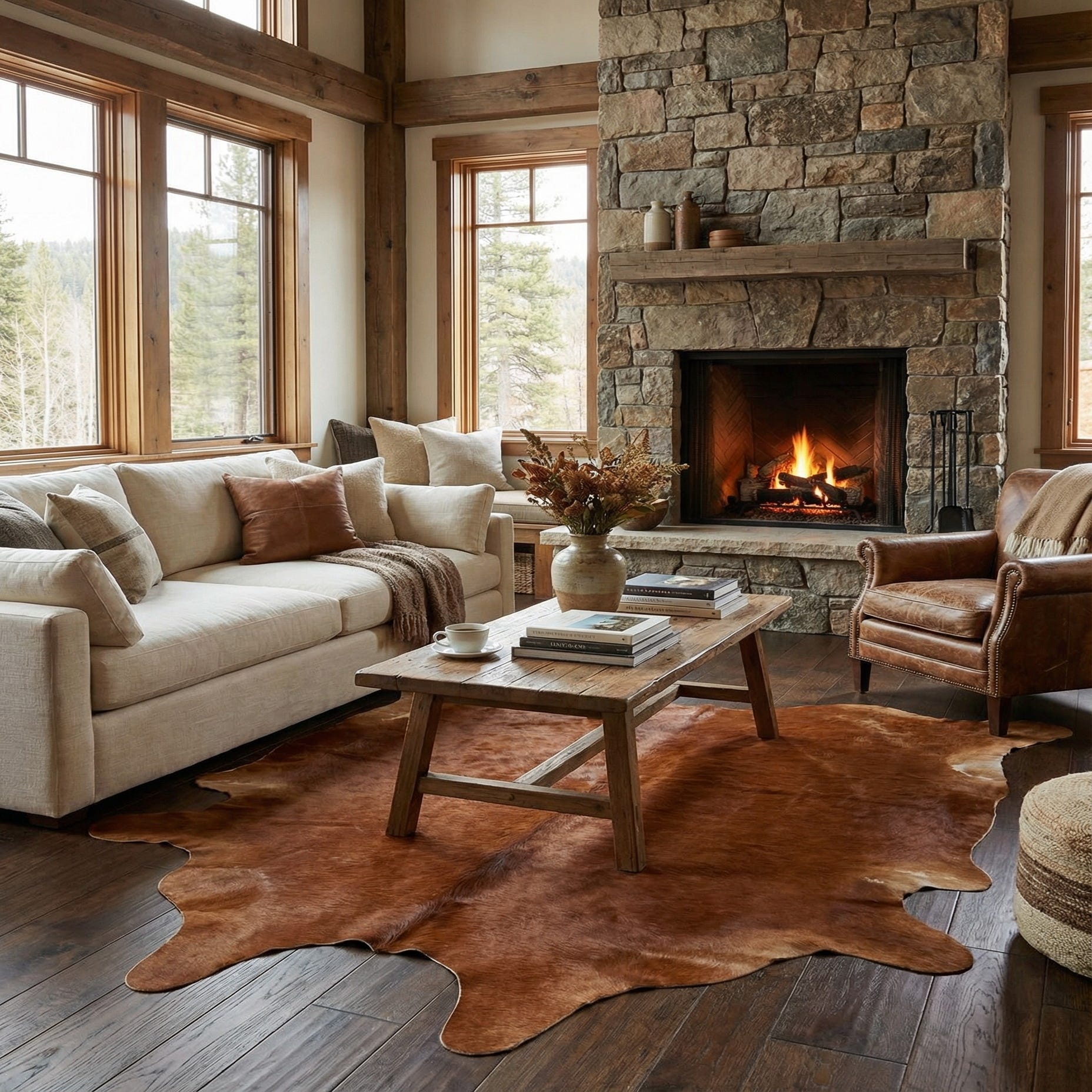 6' 5 x 7' 2 Cowhide Leather Square Rug