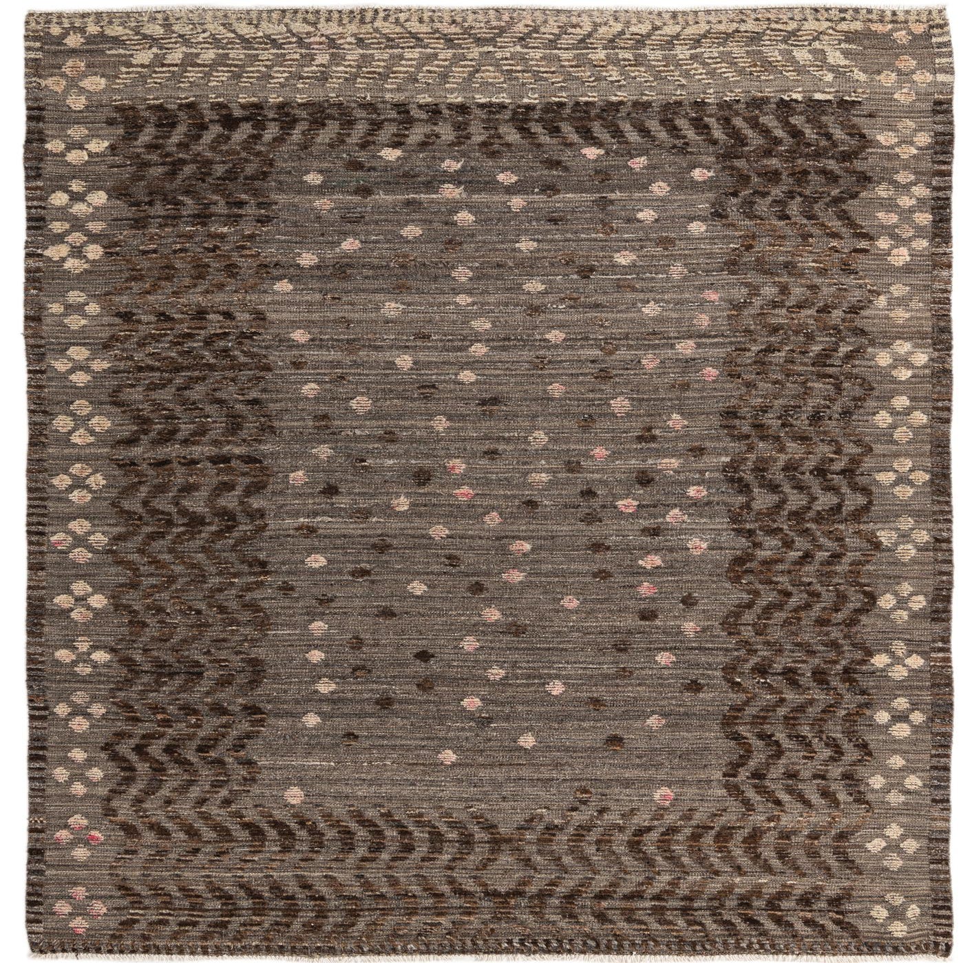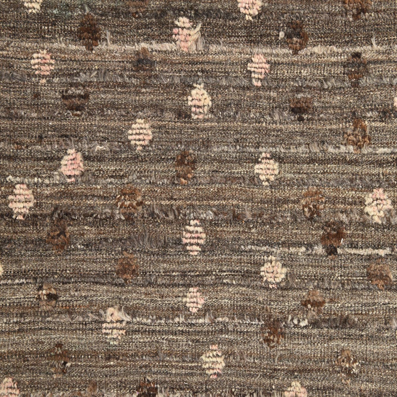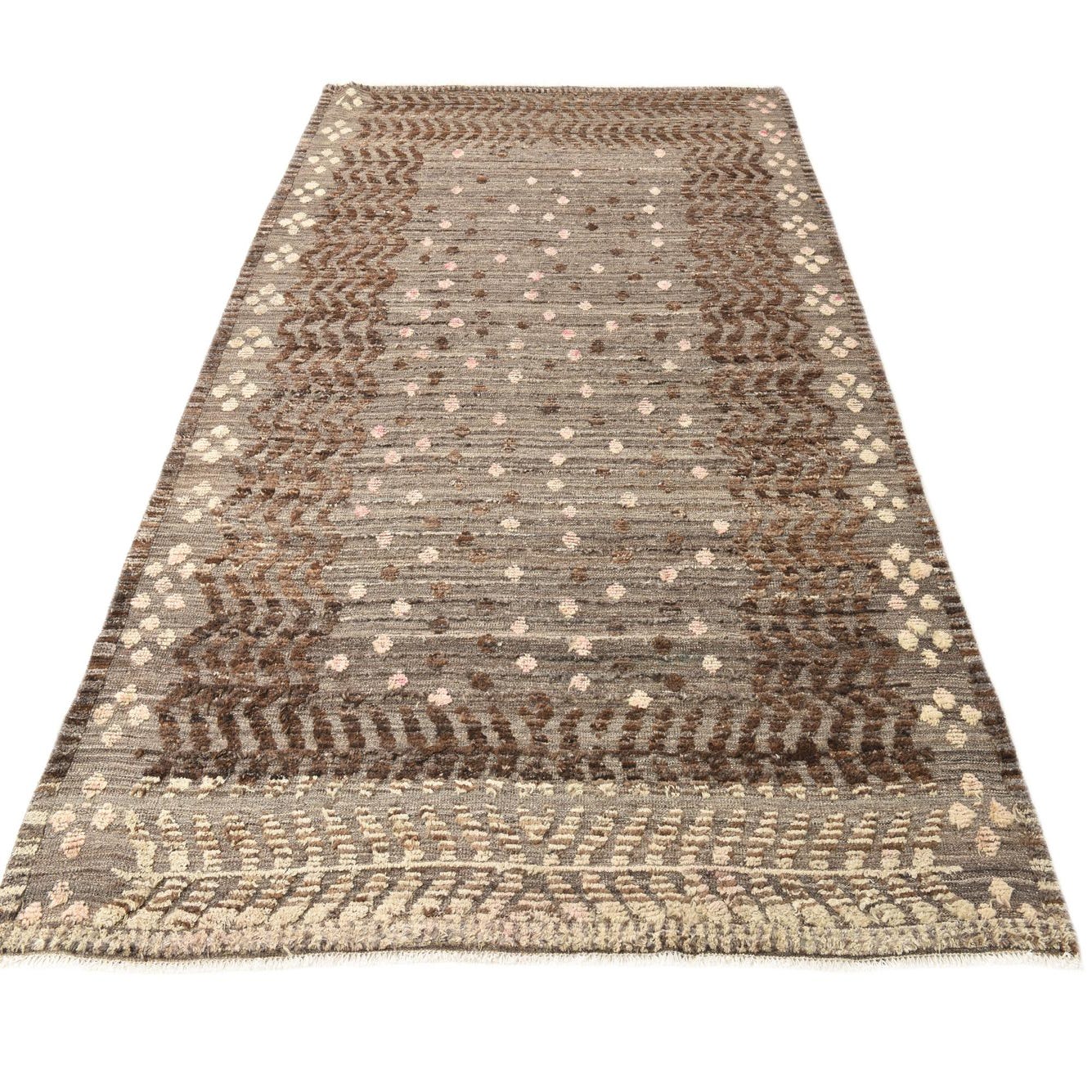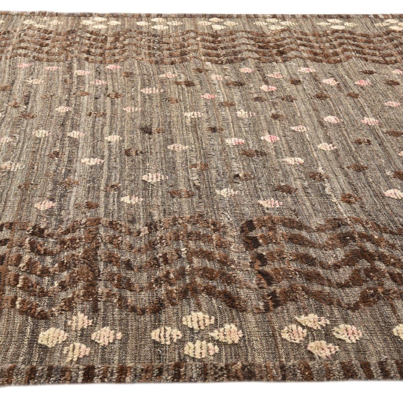 Primary color is Brown. Colors in this rug include: Brown, Beige, Ivory, Pink.