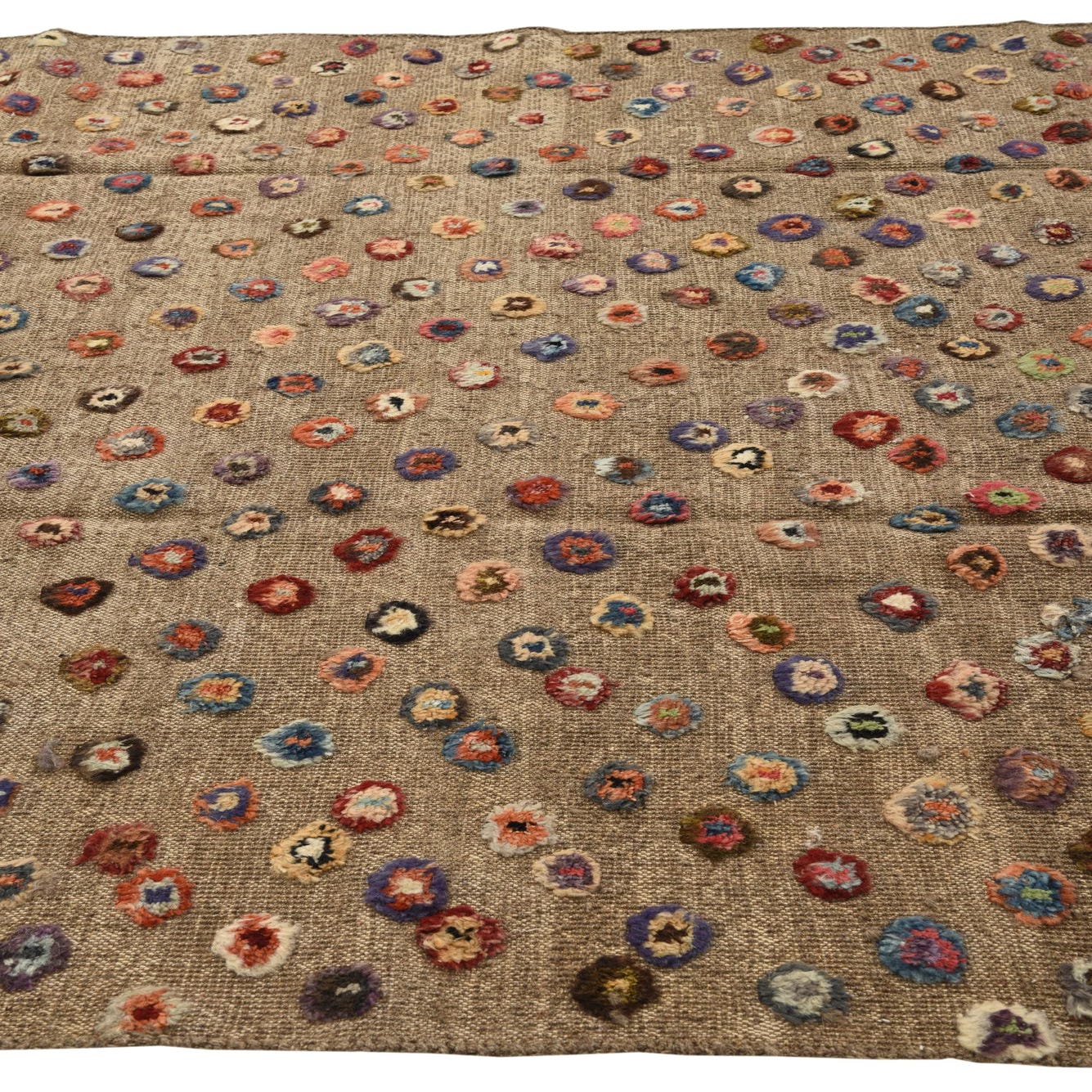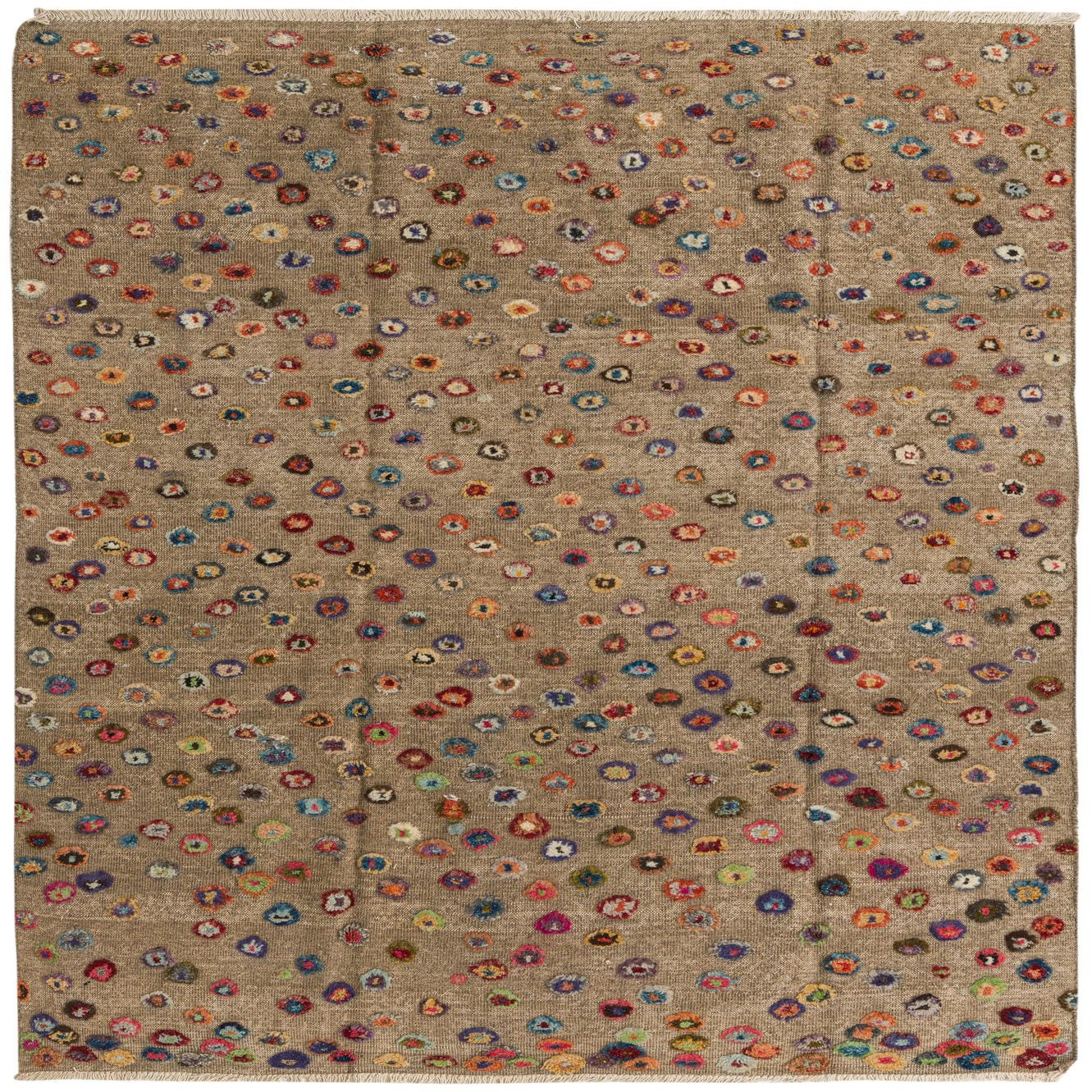 A 7x10 rectangular Darya rug with a brown background and scattered colorful abstract floral patterns, suitable for a living room.
