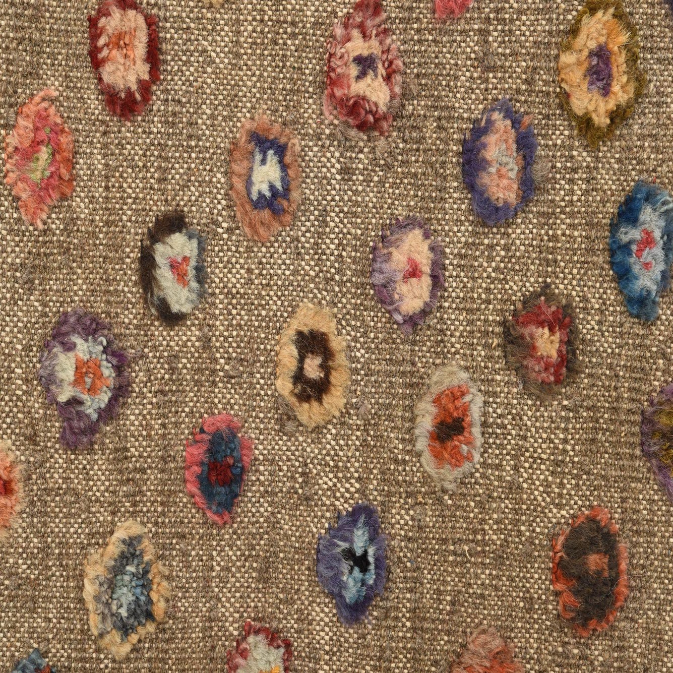 This versatile piece can be elegantly integrated into a range of decors. It is well-suited for spaces that seek a touch of color and pattern without overwhelming the area, such as neutral-toned living rooms, sophisticated office environments, or eclectic bedrooms. The rug's understated base mixed with the playful colors allows it to pair well with both modern and traditional furniture, offering design flexibility for various interior settings.