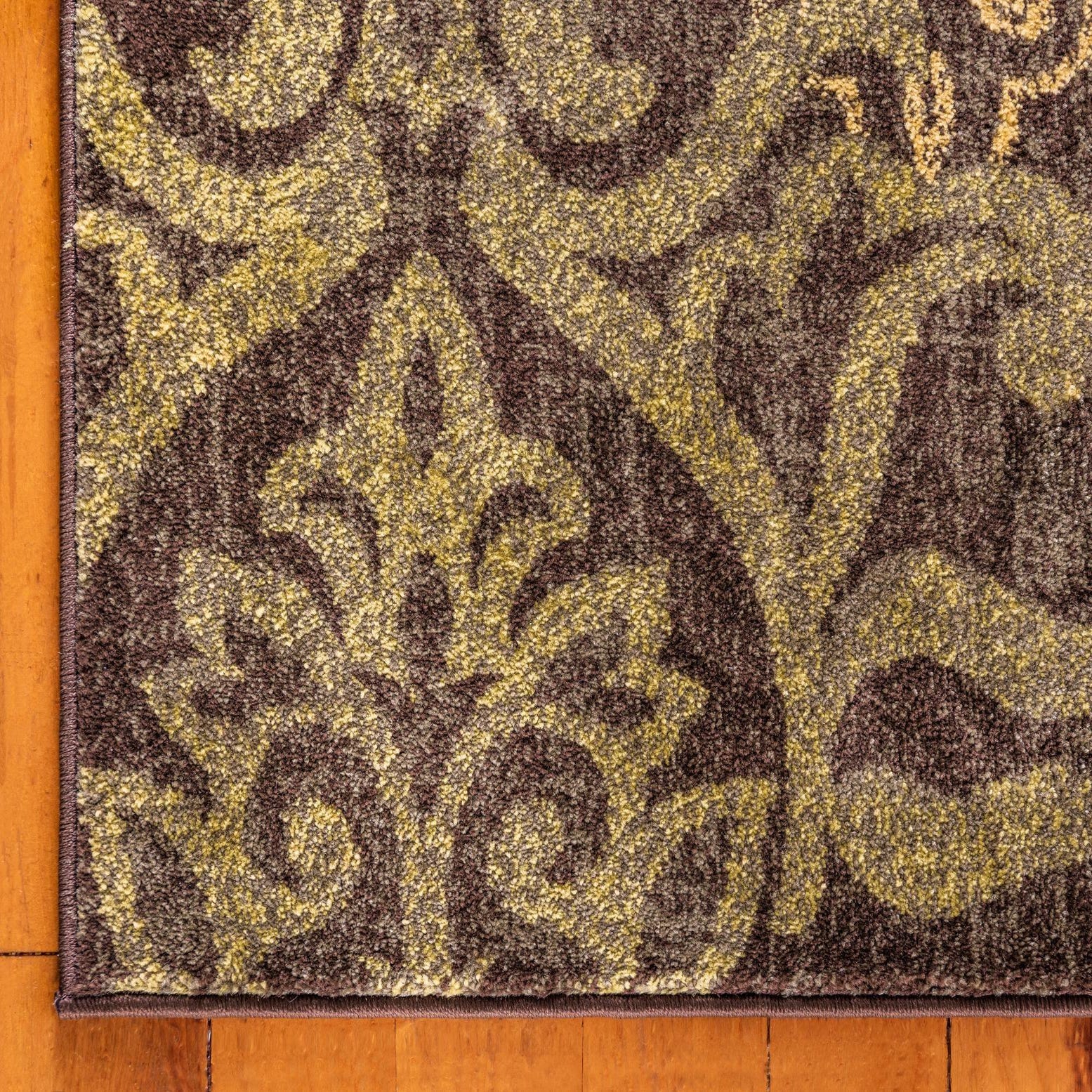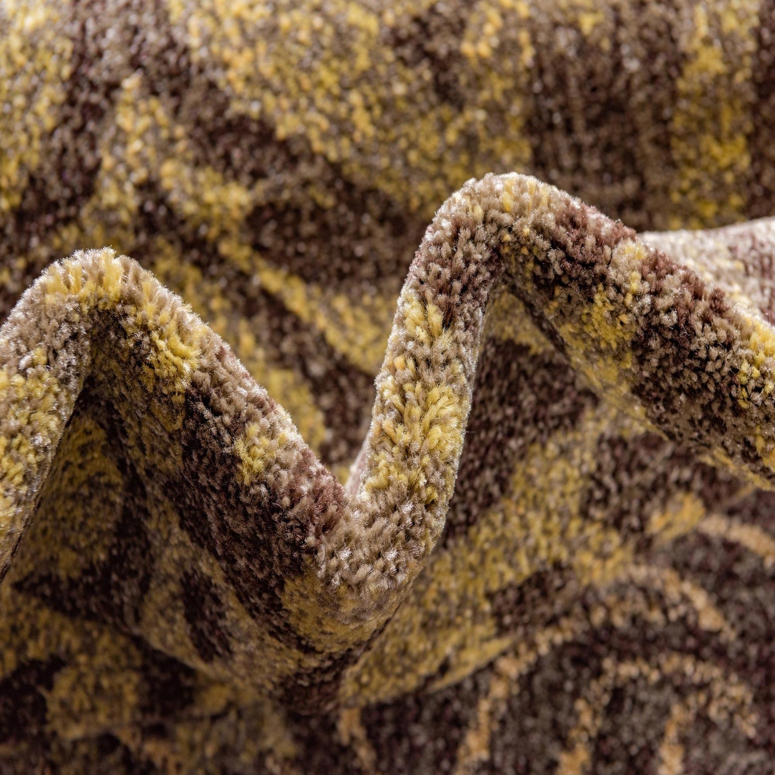 Primary color is Brown. Colors in this rug include: Brown, Olive, Yellow.