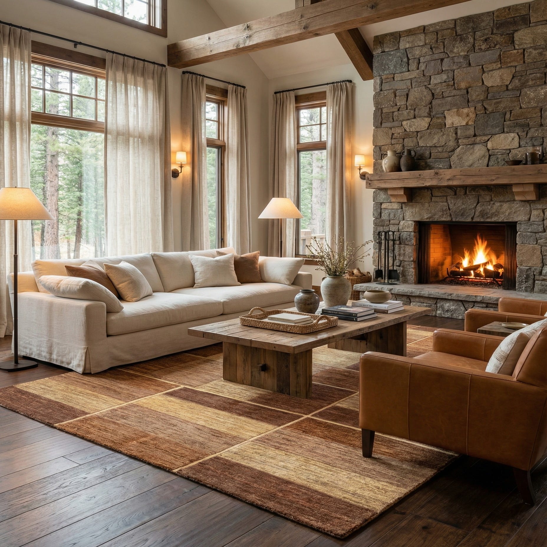 Primary color is Brown. Colors in this rug include: Brown, Beige.