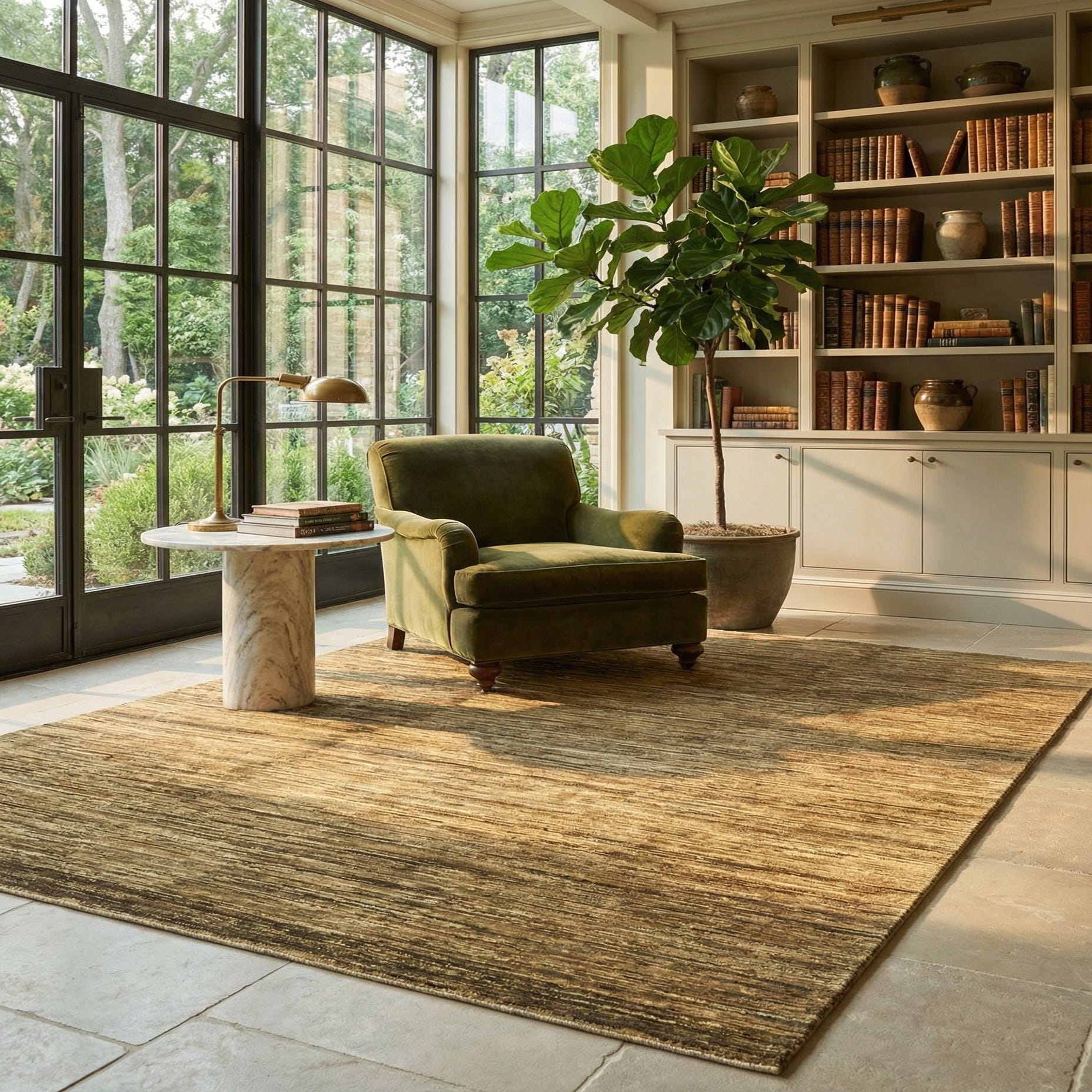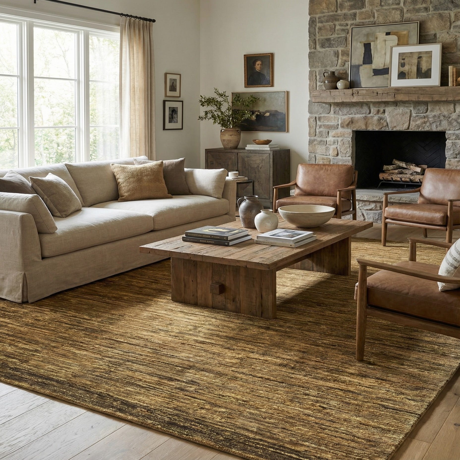 Primary color is Brown. Colors in this rug include: Brown, Beige, Light Brown, Olive.