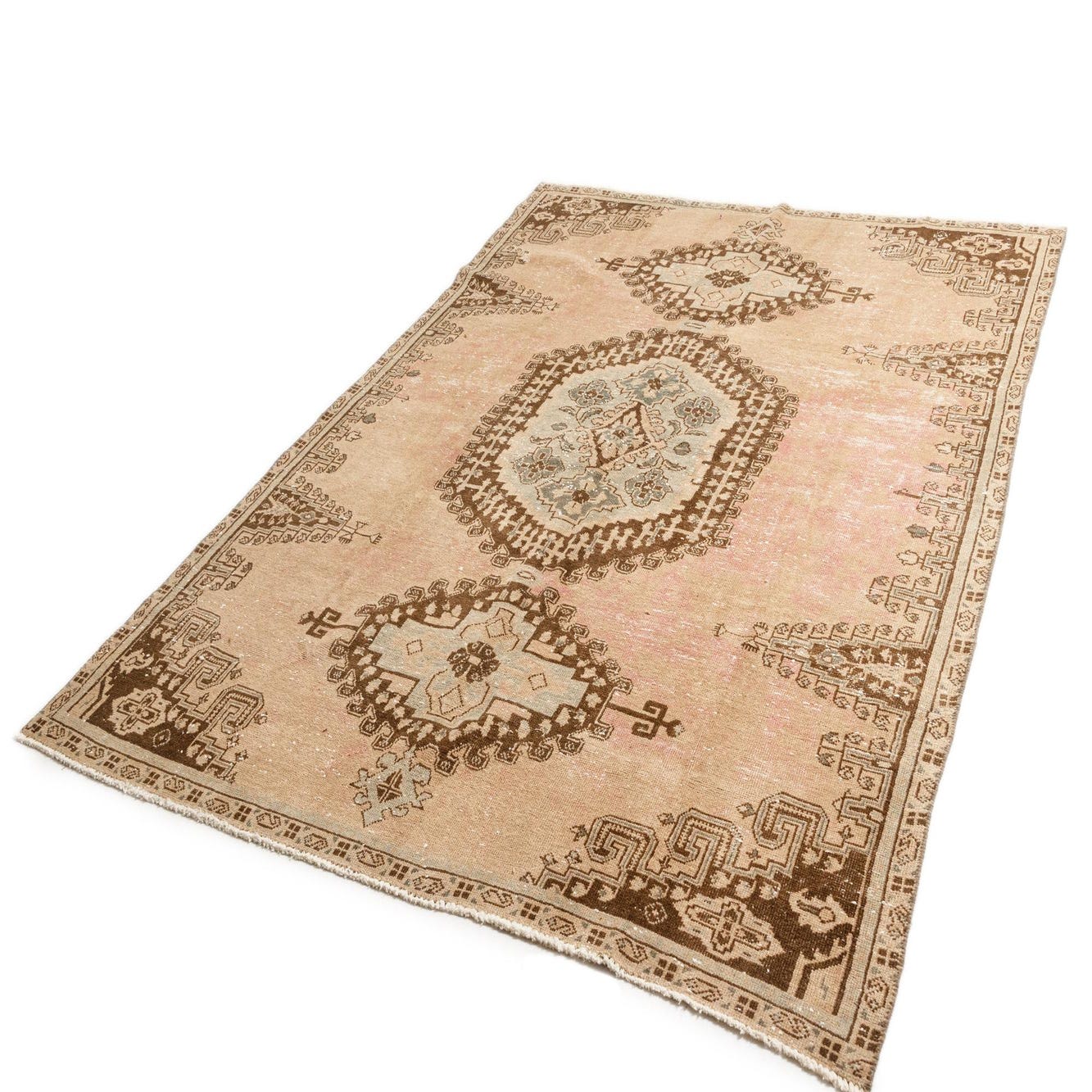 A 7x10 rectangular Persian rug in shades of brown and tan, featuring an intricate medallion design and traditional patterns.
